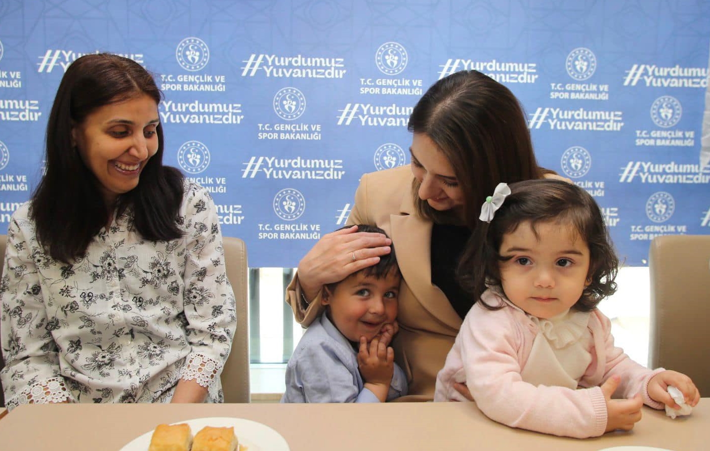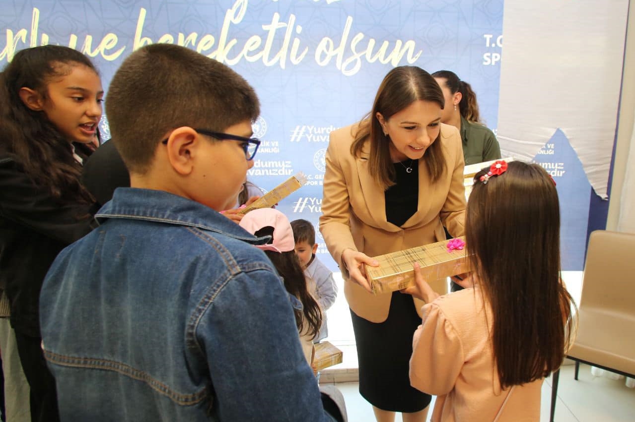Amasya Valisi Mustafa Masatlı'nın eşi Esra Masatlı ile protokol üyeleri, Kredi Yurtlar Kurumu Sultan Bayezid Öğrenci Yurdu'nda misafir edilen depremzedeleri ziyaret ederek bayramlarını kutladı.