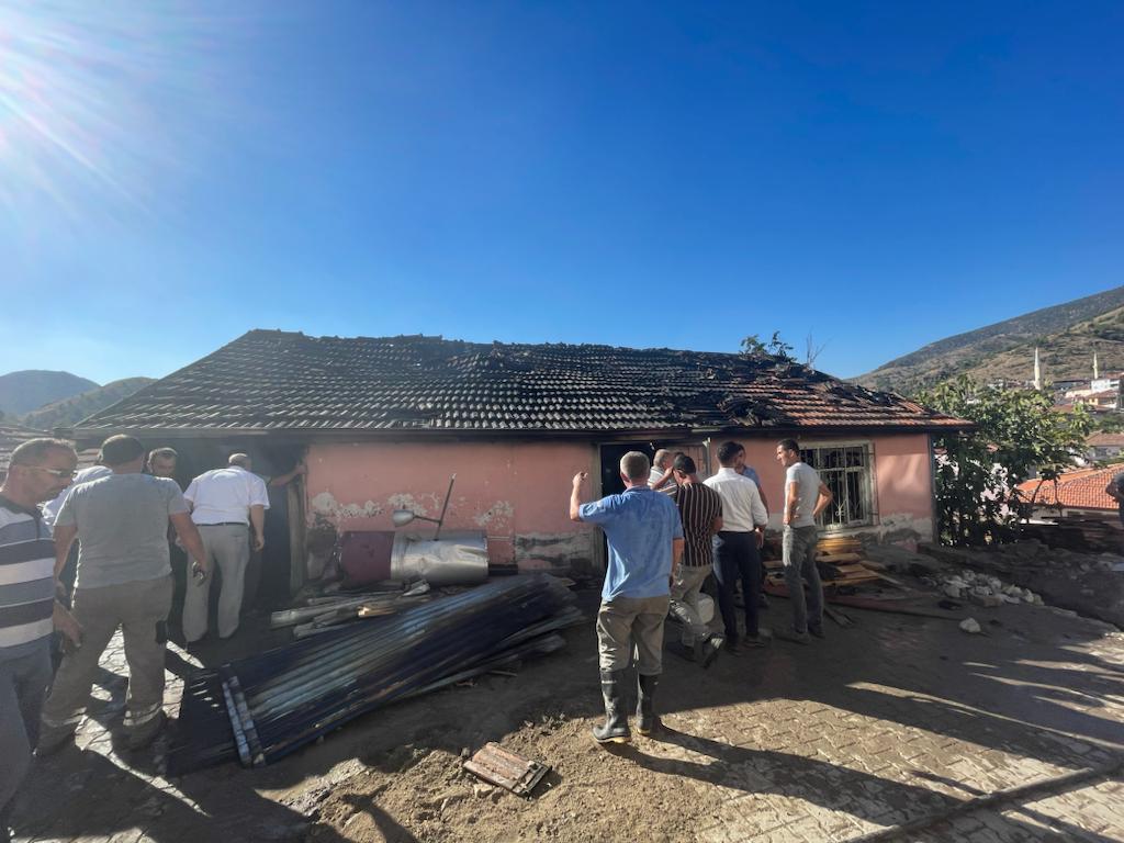 İtfaiye ekiplerinin müdahalesiyle söndürülen yangın, evde hasara yol açtı.