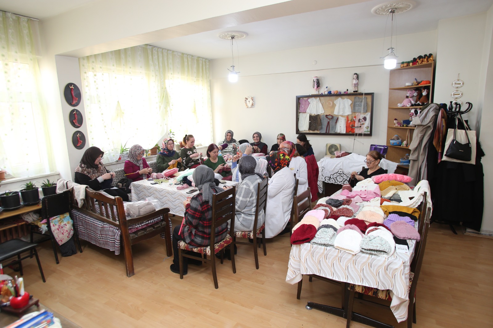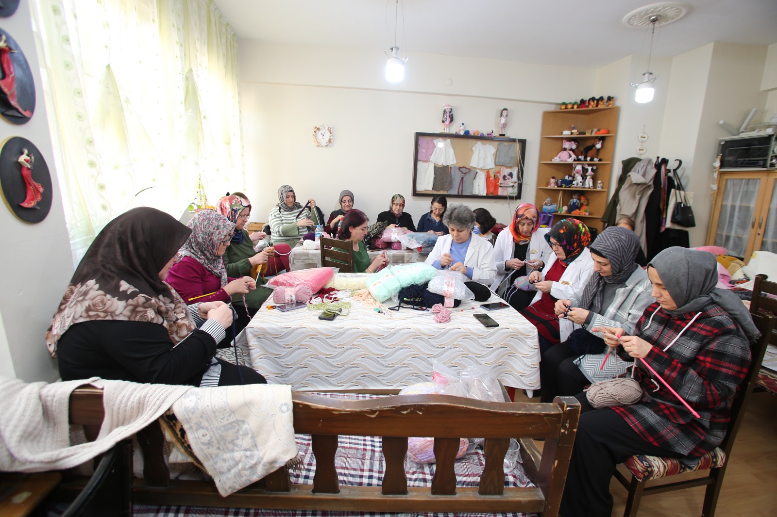 Amasya Şehit Mehmet Gök Halk Eğitimi Merkezi ile Şehit Aziz Sağlam İmam Hatip Ortaokulu Kurs Merkezindeki usta öğreticiler, kursiyerler ve gönüllülerin depremzedeler için diktikleri eşofman takımı, içlik, hırka, atkı, bere ve eldivenler deprem bölgesindeki afetzedelere ulaştırıldı.