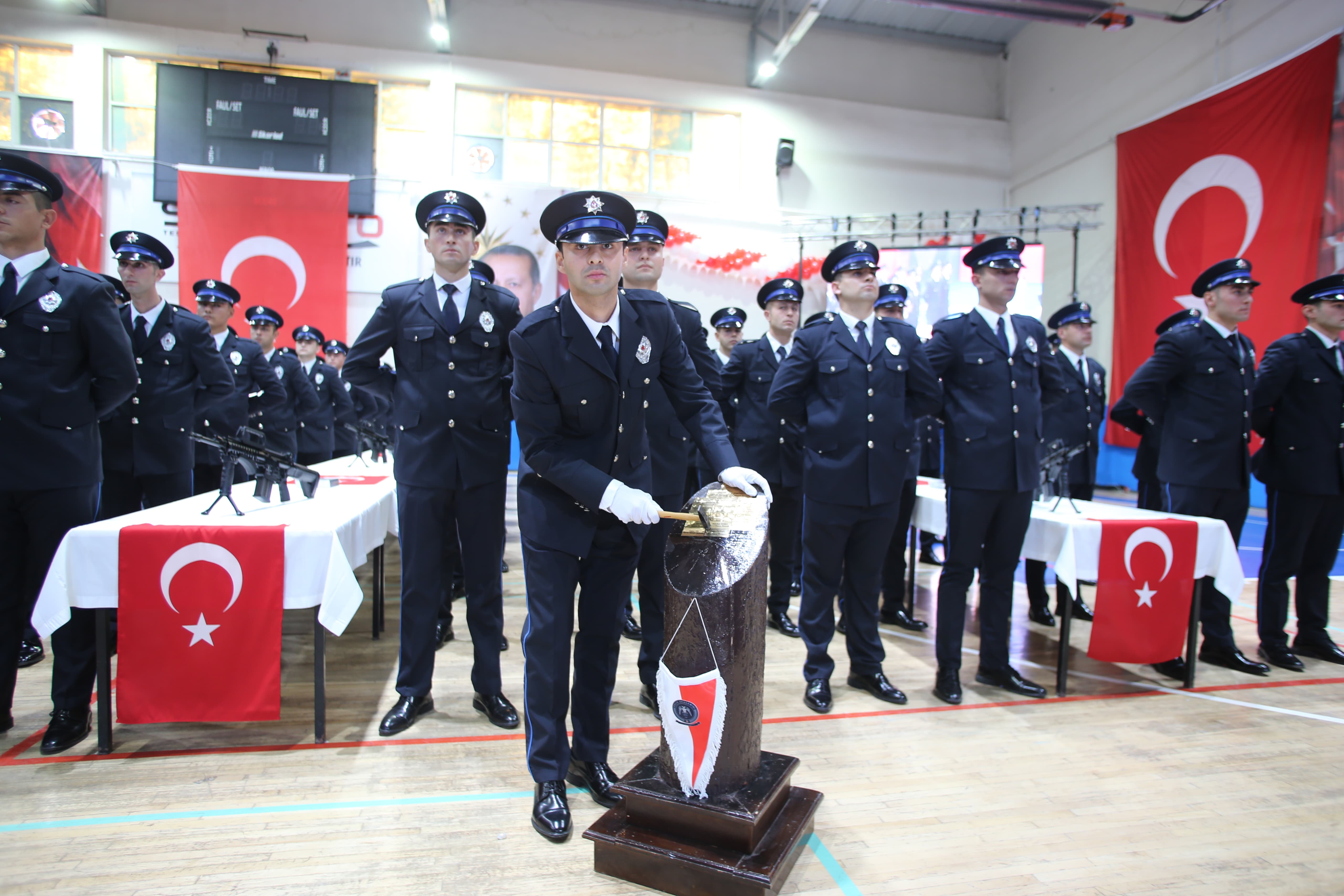 Eğitim sürecinin ardından 15 kente atamaları yapılan 236 polisin ant içme ve diploma töreni, okulun spor salonunda yapıldı.
