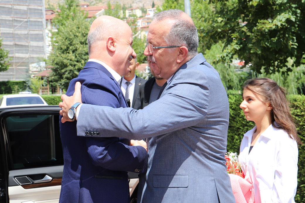 AMASYA (AA) – Yükseköğretim Kurulu (YÖK) Başkanı Prof. Dr. Erol Özvar, yeni atanan Amasya Üniversitesi Rektörü Prof. Dr. Ahmet Hakkı Turabi'yi ziyaret etti.