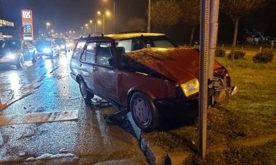 Otomobil trafik lambasına çarptı: 2 yaralı