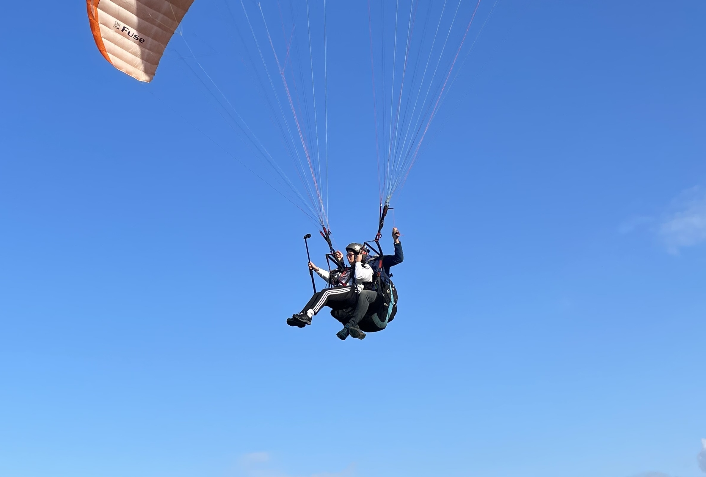 Yılmaz, pilot Tarık Yıldırım ile tandem atlayış yaparak yamaç paraşütüyle uçuş deneyimi yaşadı. Heyecanlı olduğu gözlenen Zeynep öğretmen, yaklaşık 20 dakika gökyüzünde uçtu.