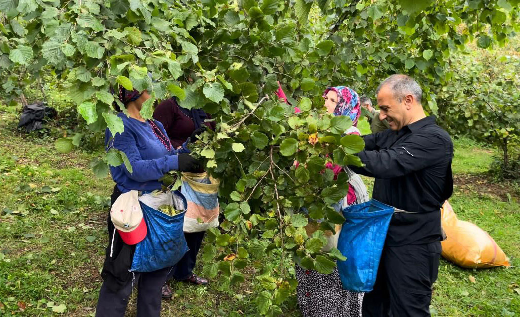Ordu Valisi Sonel, işçilerle fındık topladı