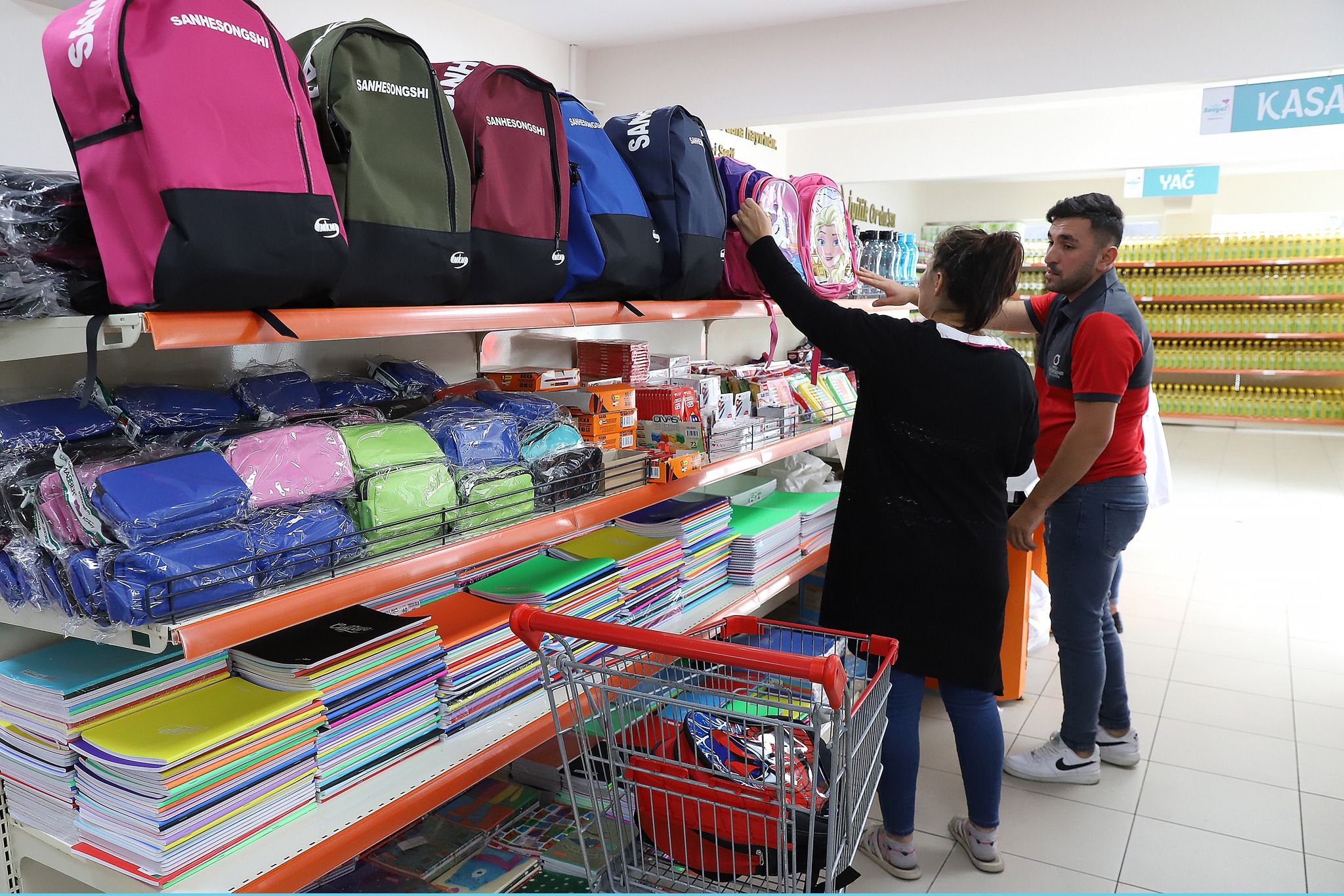 Öğrenciler için kırtasiye ürünlerinin raflarda yerini aldığına işaret edilen açıklamada, “Sosyal Market'ten aktif faydalanan ailelerin çocukları için başlatılan bu proje ile öğrenci ve veliler çeşitli kırtasiye ihtiyaçları karşılamaya başladı.” ifadeleri kullanıldı.