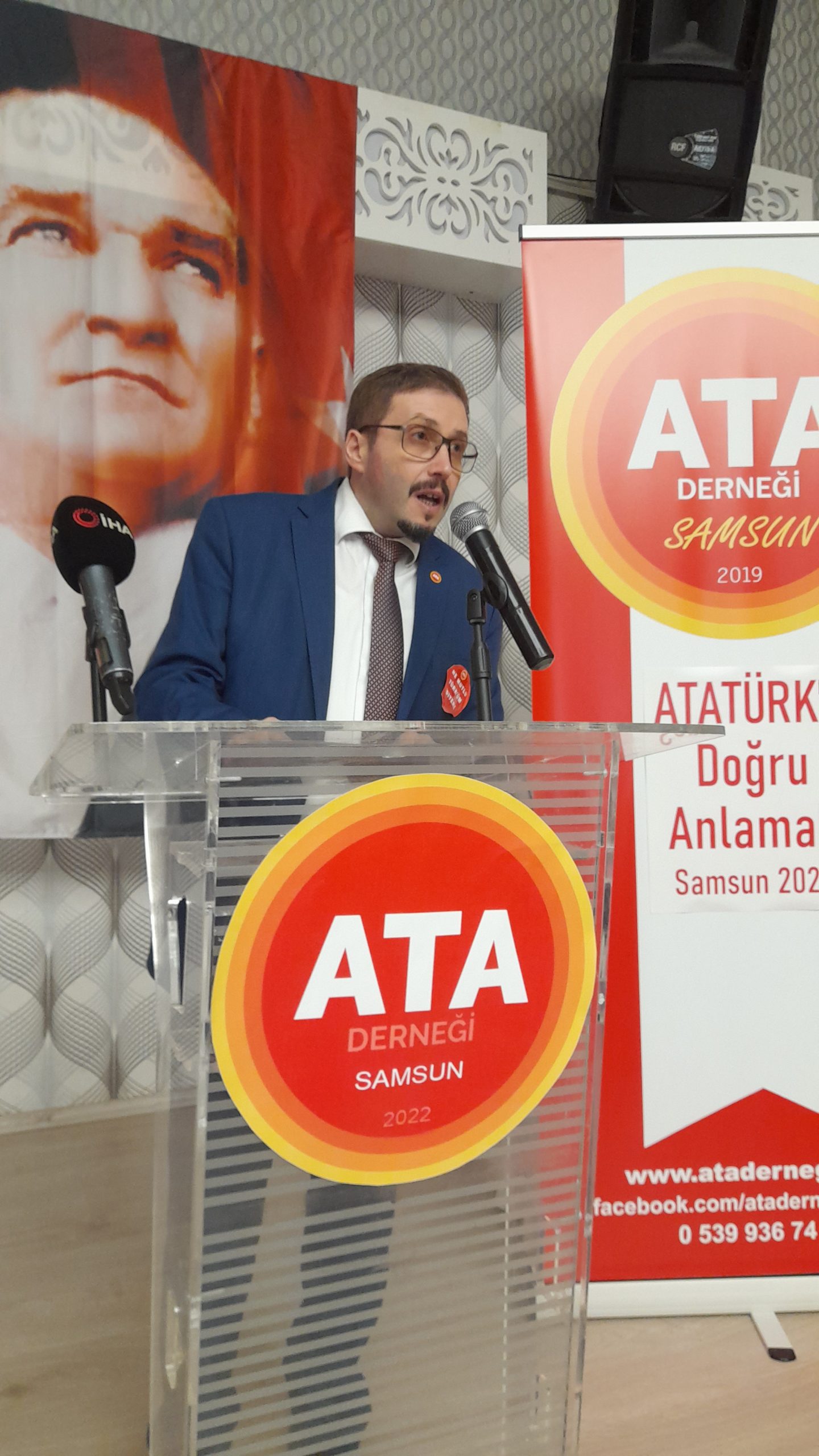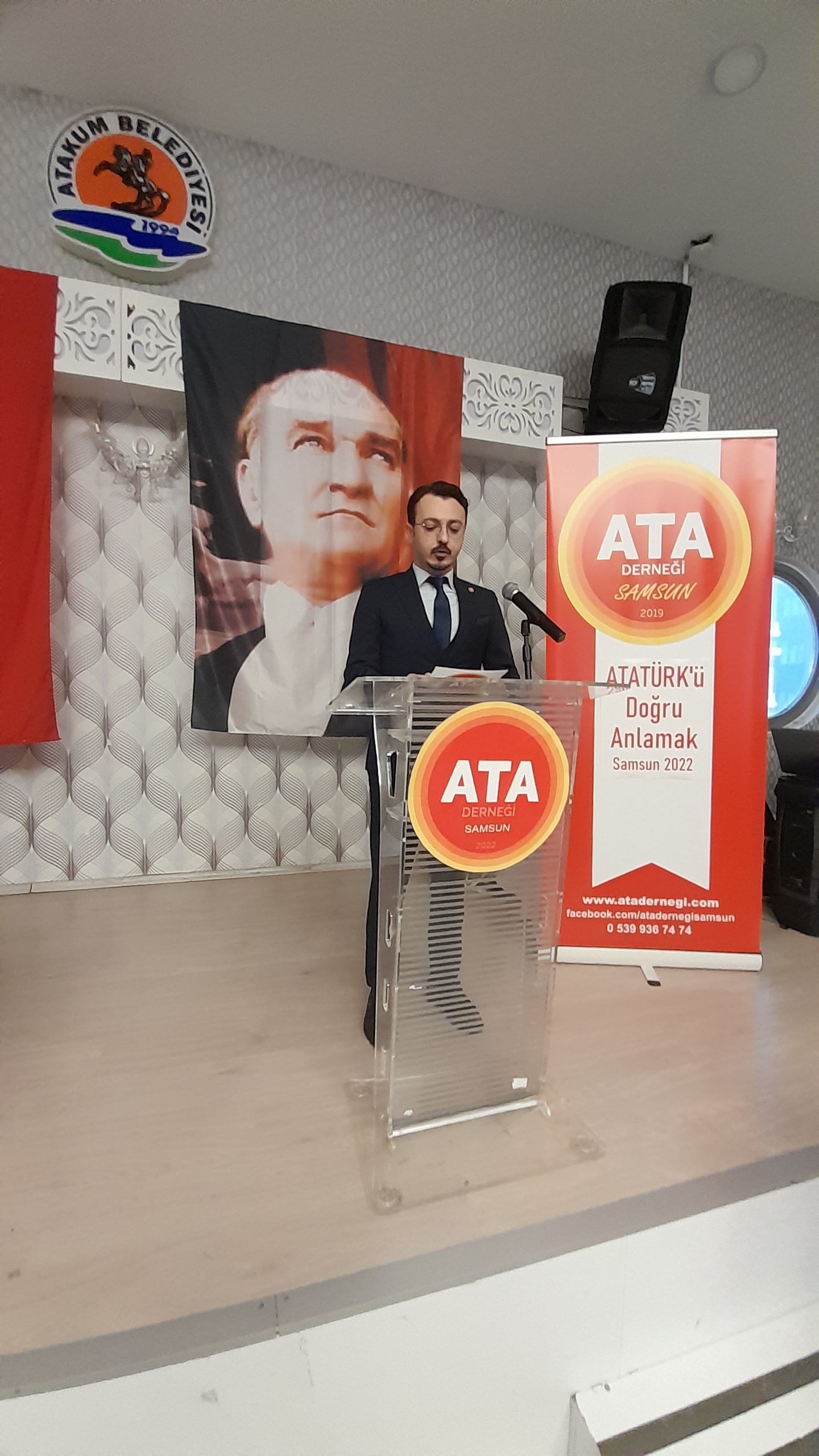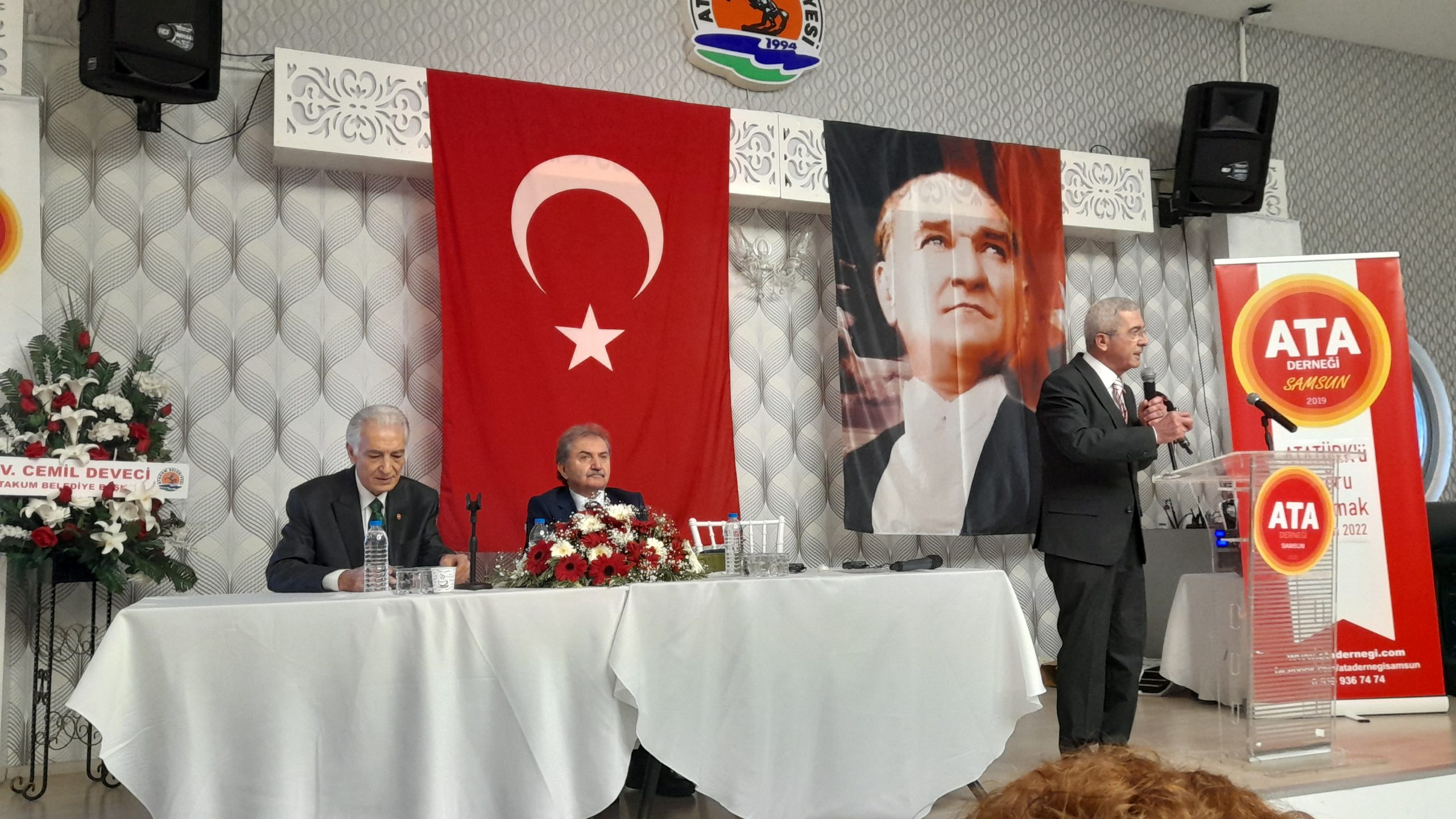 Samsun Atakum Ilcesinde Atakum Belediyesi Düğün Salonunda 17 Aralık Cumartesi Günü Saat 13.30′ da ATA Derneği Samsun Şube Yönetimi tarafından ” ATATÜRK’Ü DOĞRU ANLAMAK” Söyleşi tertip edilmiş olup, Konuşmacı olarak Sayın Namık Kemal ZEYBEK ,Sayın Feyzullah BUDAK ve Sayın Vedat CINAROĞLU katılmıştır.