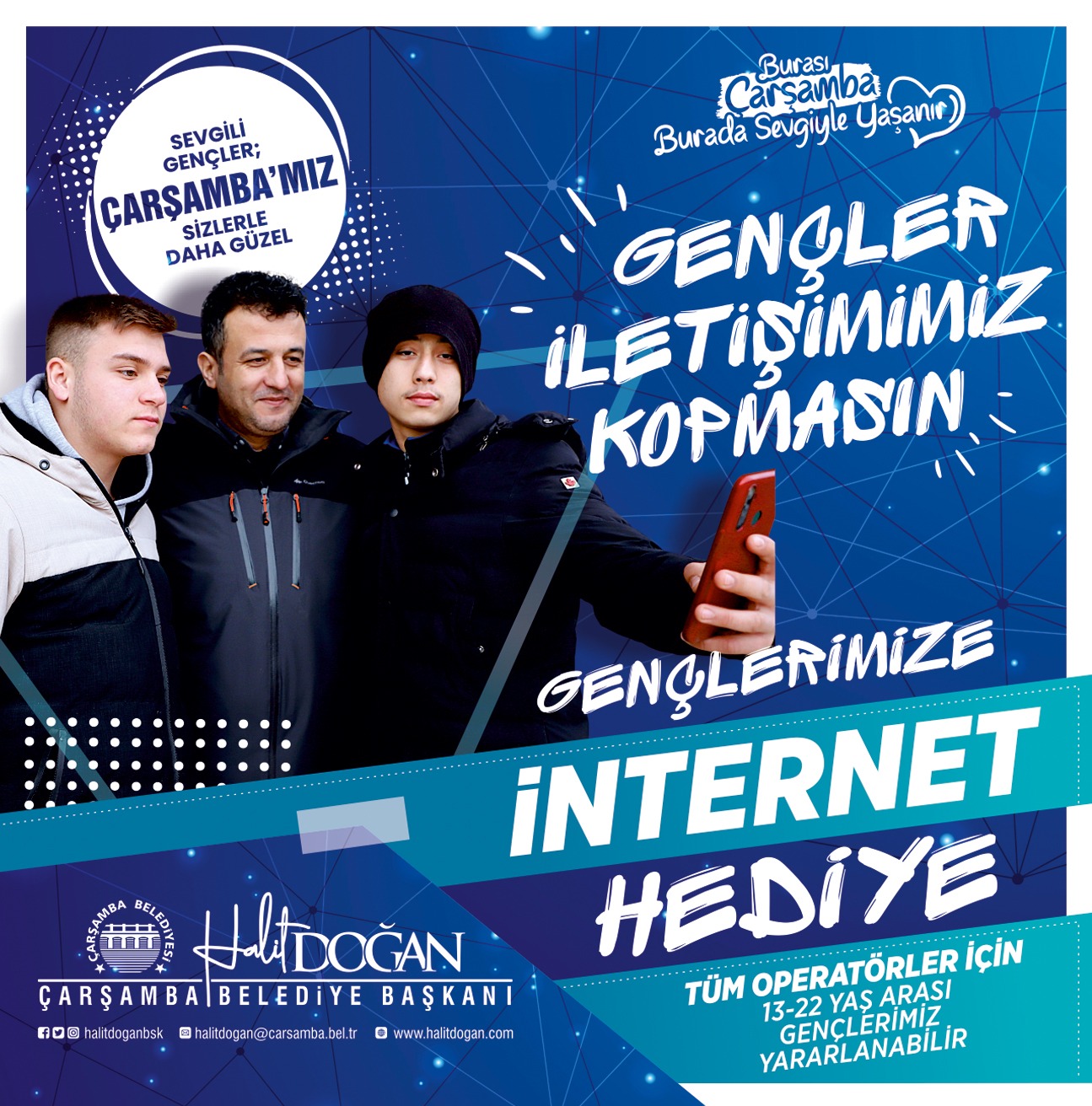 SAMSUN (AA) – Çarşamba Belediye Başkanı Halit Doğan, ilçede yaşayan gençlerin kullanımı için tüm operatörlerde geçerli olacak internet hediyesi verecek.