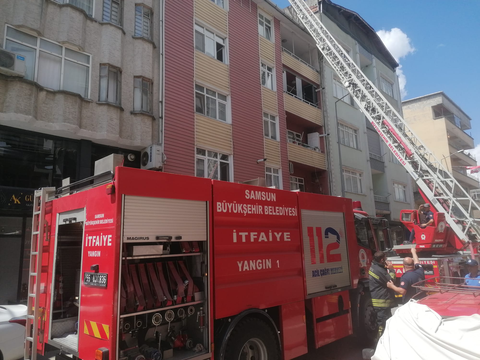Samsun Büyükşehir Belediyesi itfaiye ekiplerinin müdahalesiyle tüm çatıyı saran yangın söndürüldü.