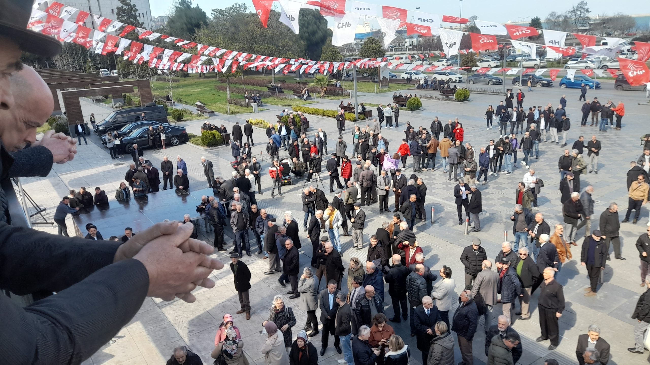 Samsunda güneşli ve sıcak bir 1 Nisan gününde sanki CHP Teşkilatı,Partililer büyük bir çoşku ve katılım ile 1 Nisan Şakası yapmışlardı.Ömer Halis Salonu saat 13.30 itibariyle tıklım tıklım dolmuş merdivenlerden en alt giriş salonu kuyruk oluşturmuş ,Salonun önünde kurulan Barkovizyon ve stattan verilen görüntüleri dışarıda bir salon daha doldurabilecek yaklaşık 500 kişide alanda yer alarak izliyorlardı.