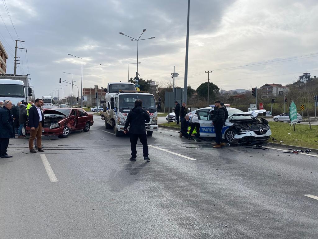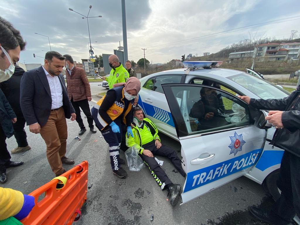Polis aracında bulunan komiser yardımcısı Uğur Erol ile diğer aracın sürücüsü yaralandı.