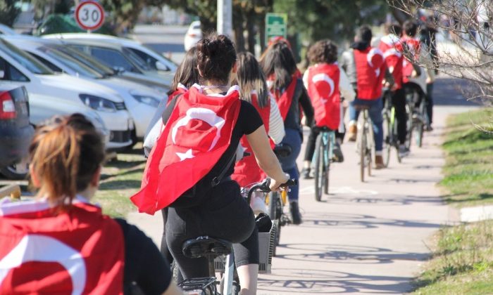 Yapılan etkinlik hakkında bilgi veren Metin Yat, “Burada şehitlerimizin yanında olduğumuzu göstermek adına böyle bir etkinlik düzenlemek istedik. Çobanlı İskelesi’nden Körfez Mahallesi’ne kadar sırtımızda bayraklarla şehitlerimizi yalnız bırakmadığımızı göstermek adına bisiklet sürüşü yaptık. Burada üniversitenin farklı bölümlerinden gönüllü arkadaşlarımız var. Biz sadece bununla da kalmayacağız. Bir köy okuluna da şehitlerimiz adına kütüphane oluşturmayı düşünüyoruz” dedi.