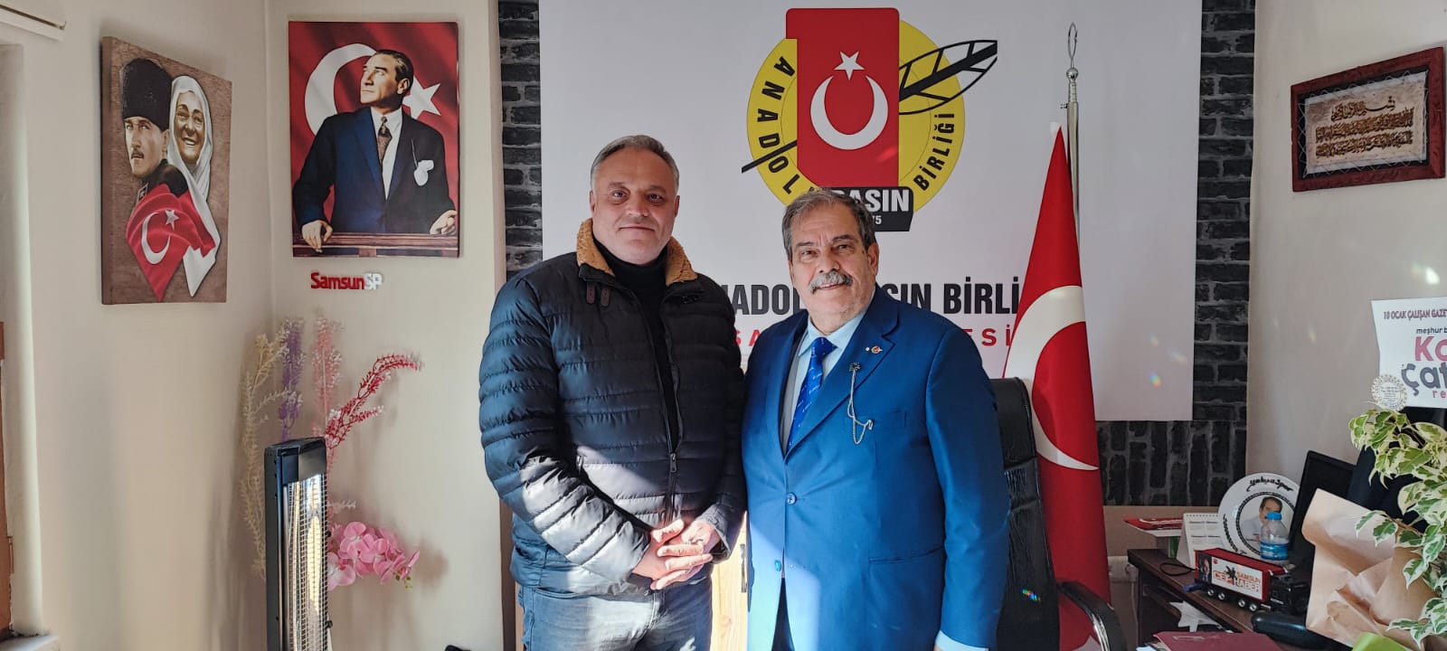 Samsunun usta Gazetecilerinden Soner CABBAR ve Çarşamba Yeşilırmak Gazeteciler Cemiyet baskanı Gazeteci Erol ŞEKER Anadolu Basın Birliği Genel Sekreteri ve ABB Samsun Şube Başkanı Turhan AKŞEN’i ziyaret ettiler.