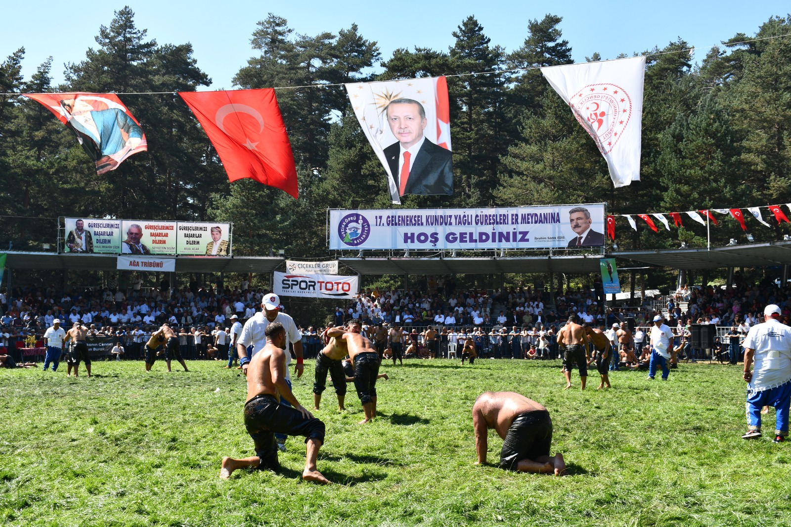 Kunduz Yaylası'nda geçekleştirilen yağlı güreşlere 64'ü başpehlivan olmak üzere binin üzerinde güreşçi katıldı.
