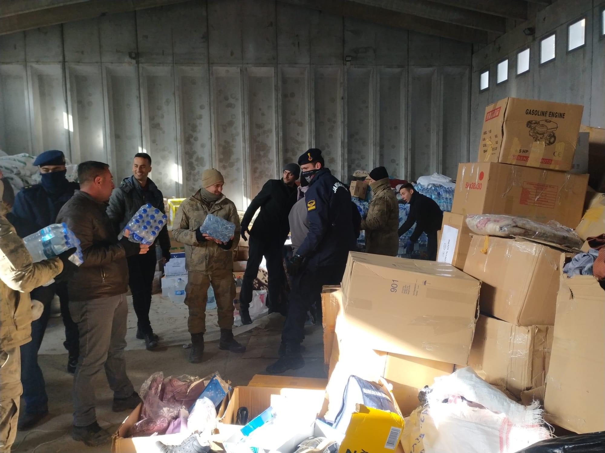Tırlardaki malzemeler bölgedeki görevliler tarafından depremzedelere dağıtıldı.
