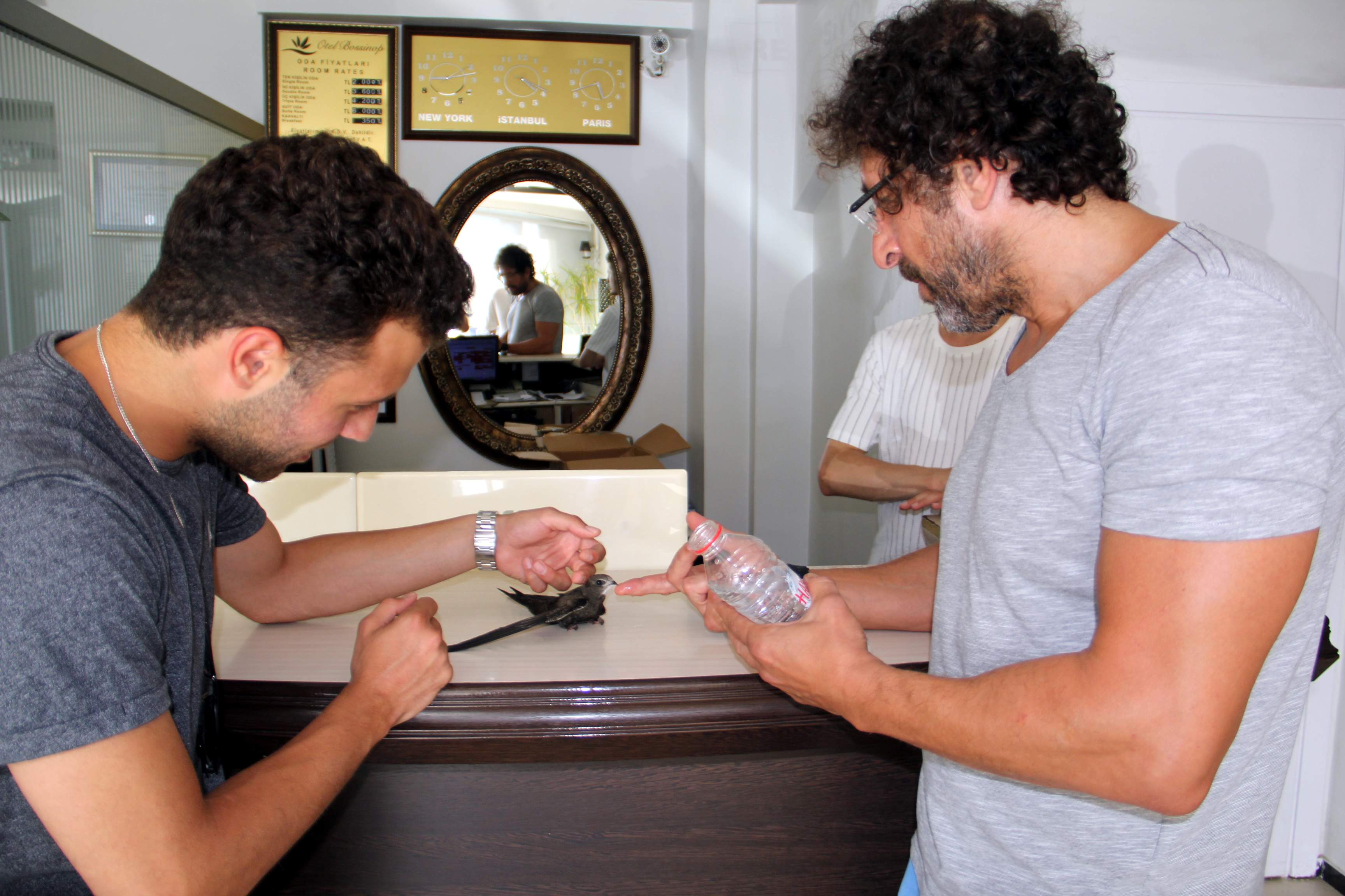 Uğur Mumcu Meydanı'nda bir otelin arka bahçesinde baygın haldeki kuşunu fark eden otel yetkilisi Fahri Bostan, kuşu Doğa Koruma Milli Parklar Şube Müdürlüğü ekiplerine teslim etti.