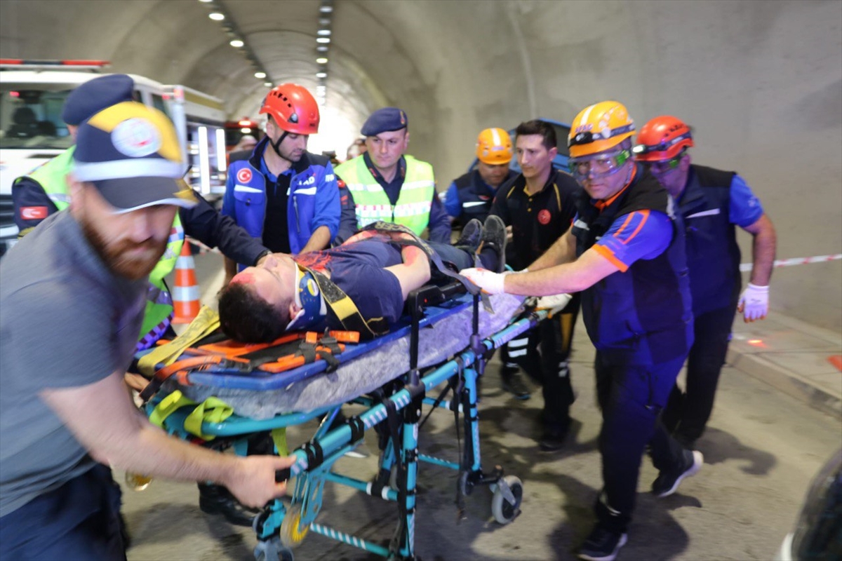 Güzelceçay Tüneli içinde gerçekleştirilen tatbikatta, senaryo gereği devrilen bir araçtaki yaralılar, tatbikata katılan jandarma, AFAD, sağlık, emniyet, itfaiye ve Karayolları görevlilerince araçtan çıkartılarak hastaneye sevk edildi.
