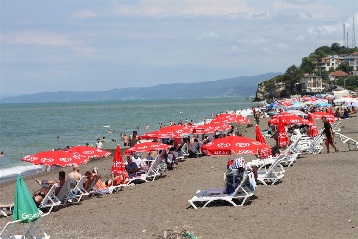 Kimi tatilciler sahilde güneşlenirken bazıları denize girerek serinledi.