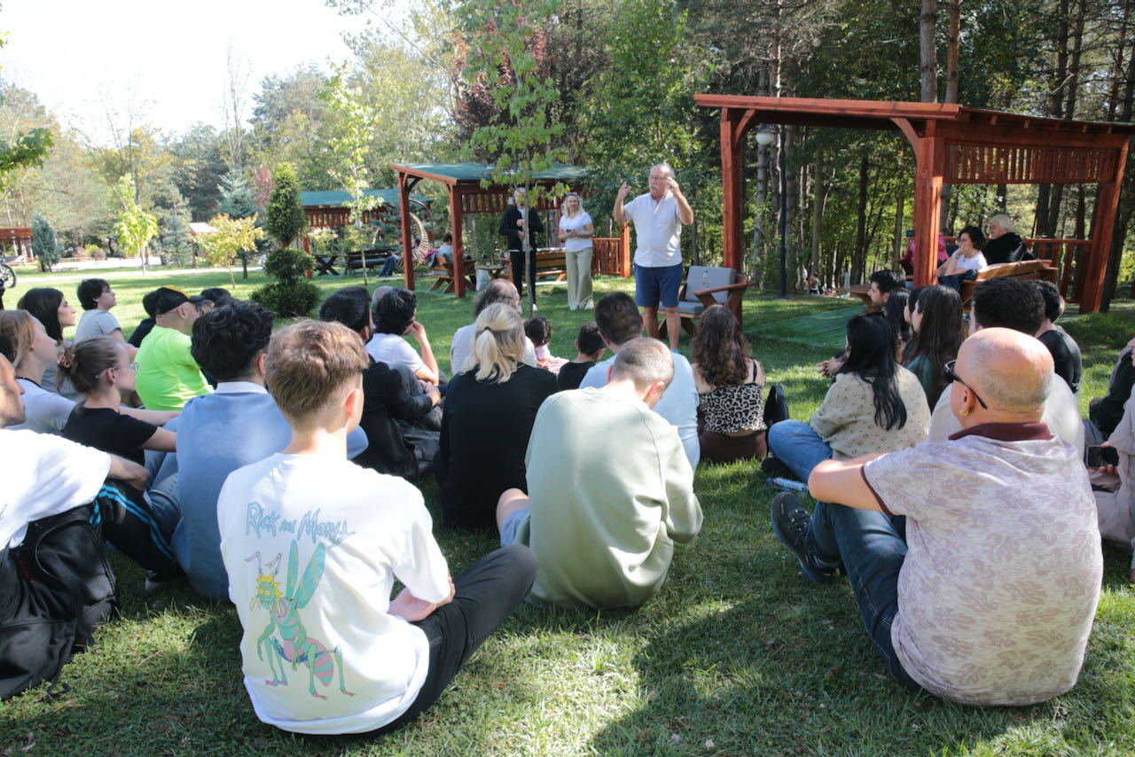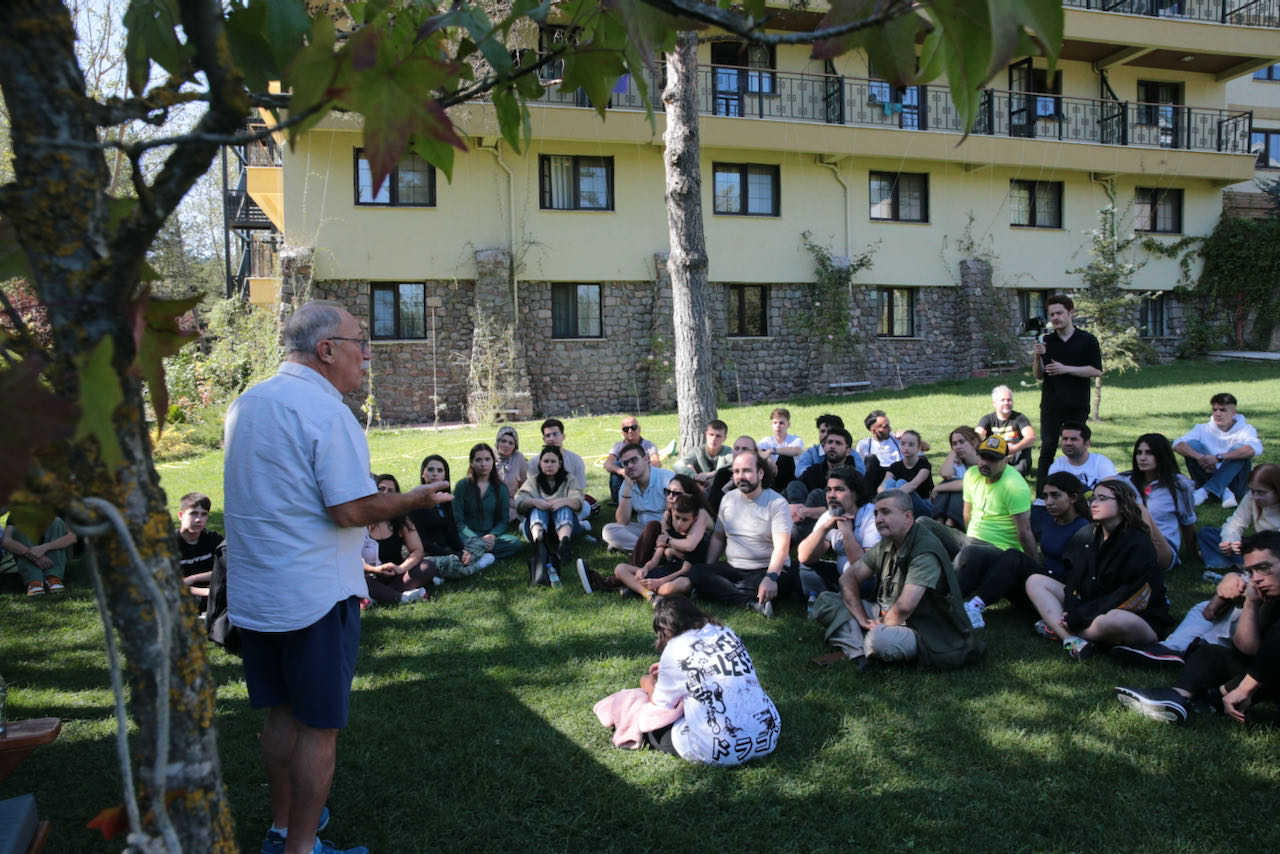 Teorik ve pratik uygulamaların ardından Erkekli ile bir araya gelen oyuncu adayları, çam ve köknar ağaçlarının altında ders yaptı.