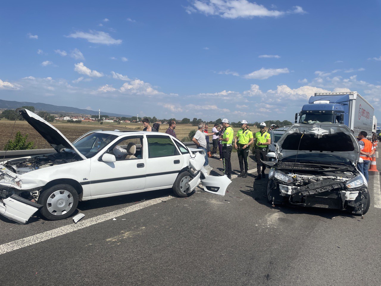 Yolda trafik tek şeritten sağlanırken, ekiplerinin araçların kaldırılması için çalışması sürüyor.