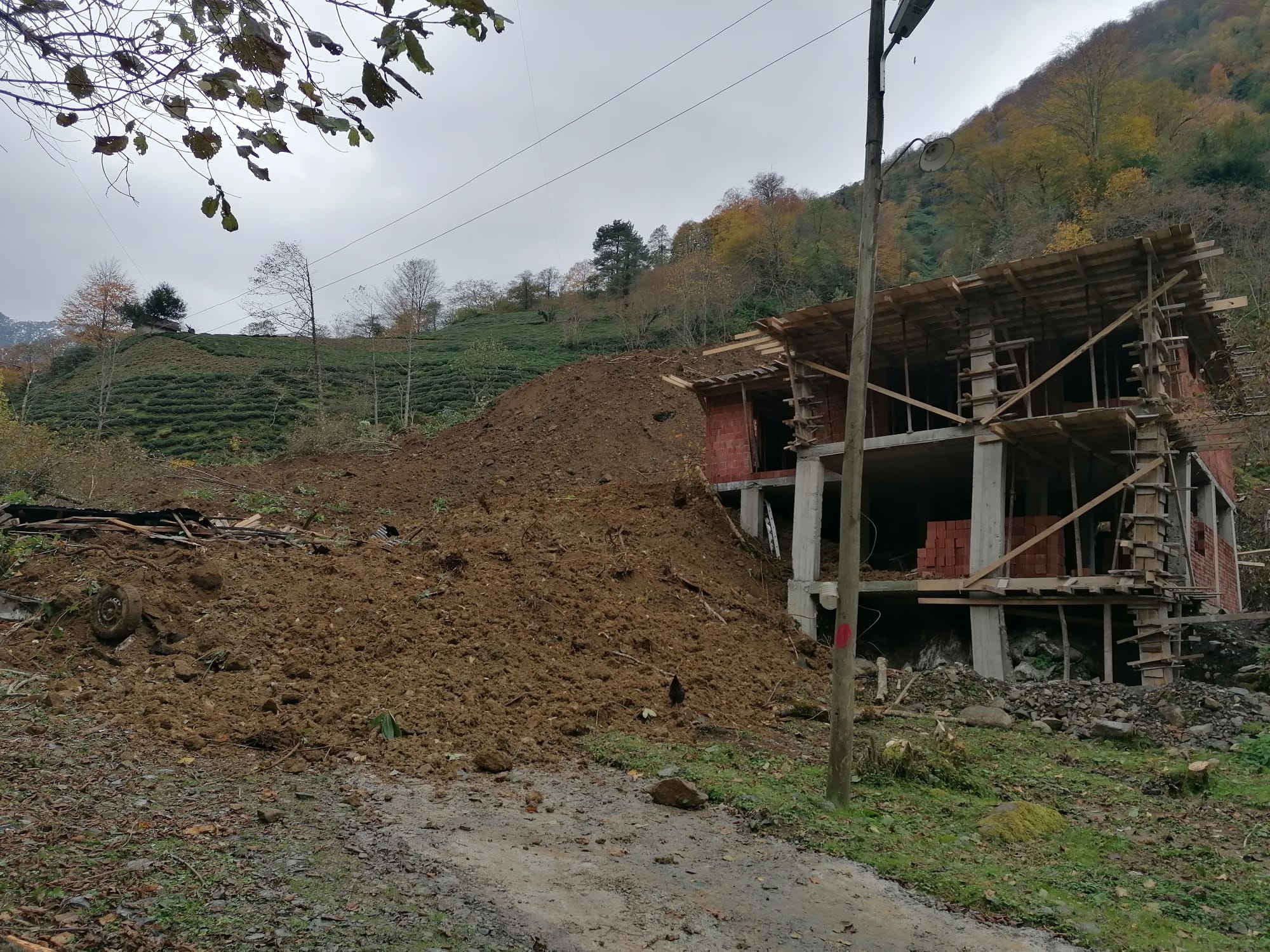 İlçeye bağlı Yolgeçen köyünde yamaçtan kopan toprak kütlesi, Volkan Erkan'a ait 3 katlı ev inşaatı ile Mustafa Gaz'a ait park halindeki otomobilin üzerine düştü.