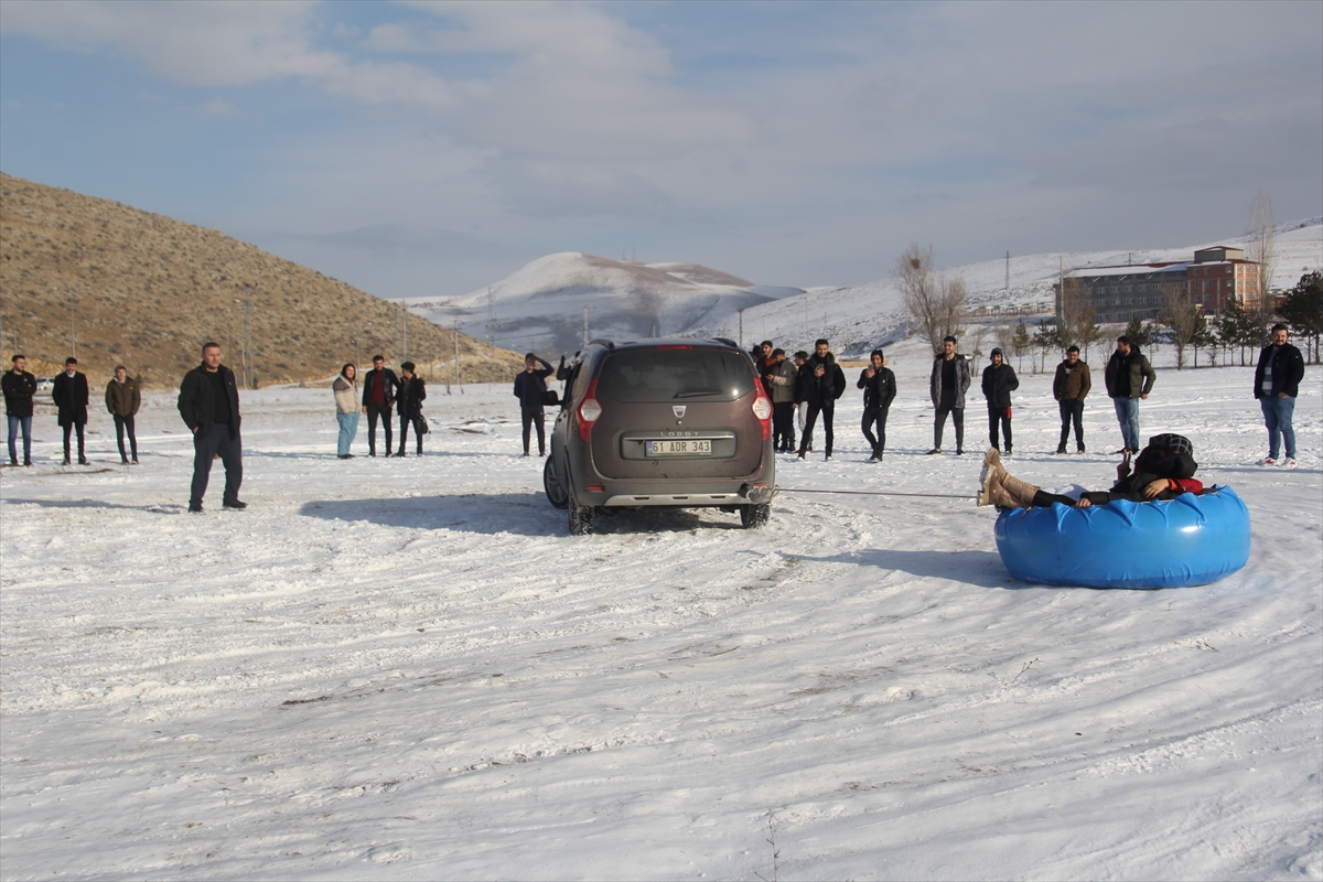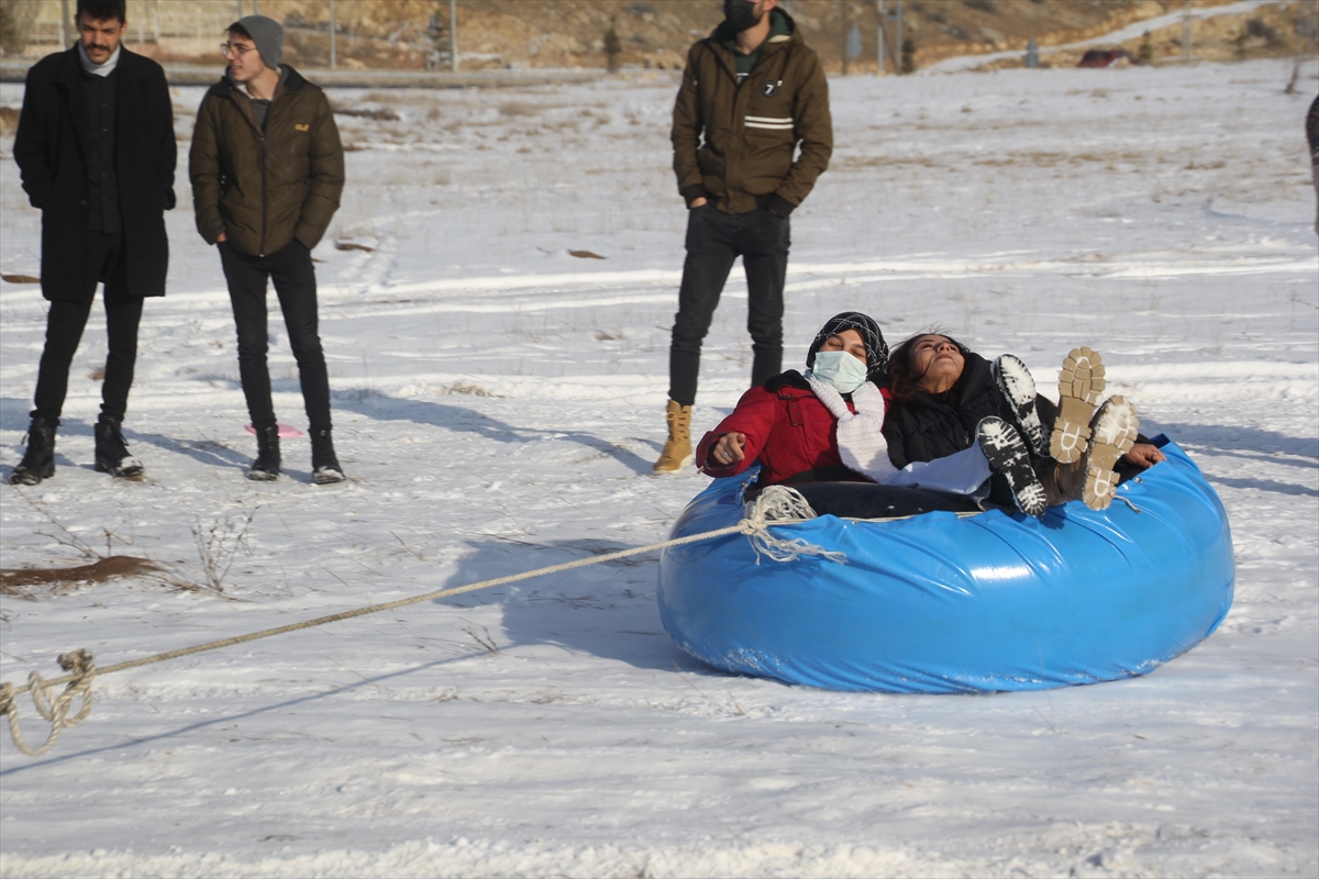Üniversiteliler, yer yer 50 santimetreyi bulan karda doyasıya eğlenerek stres attı.