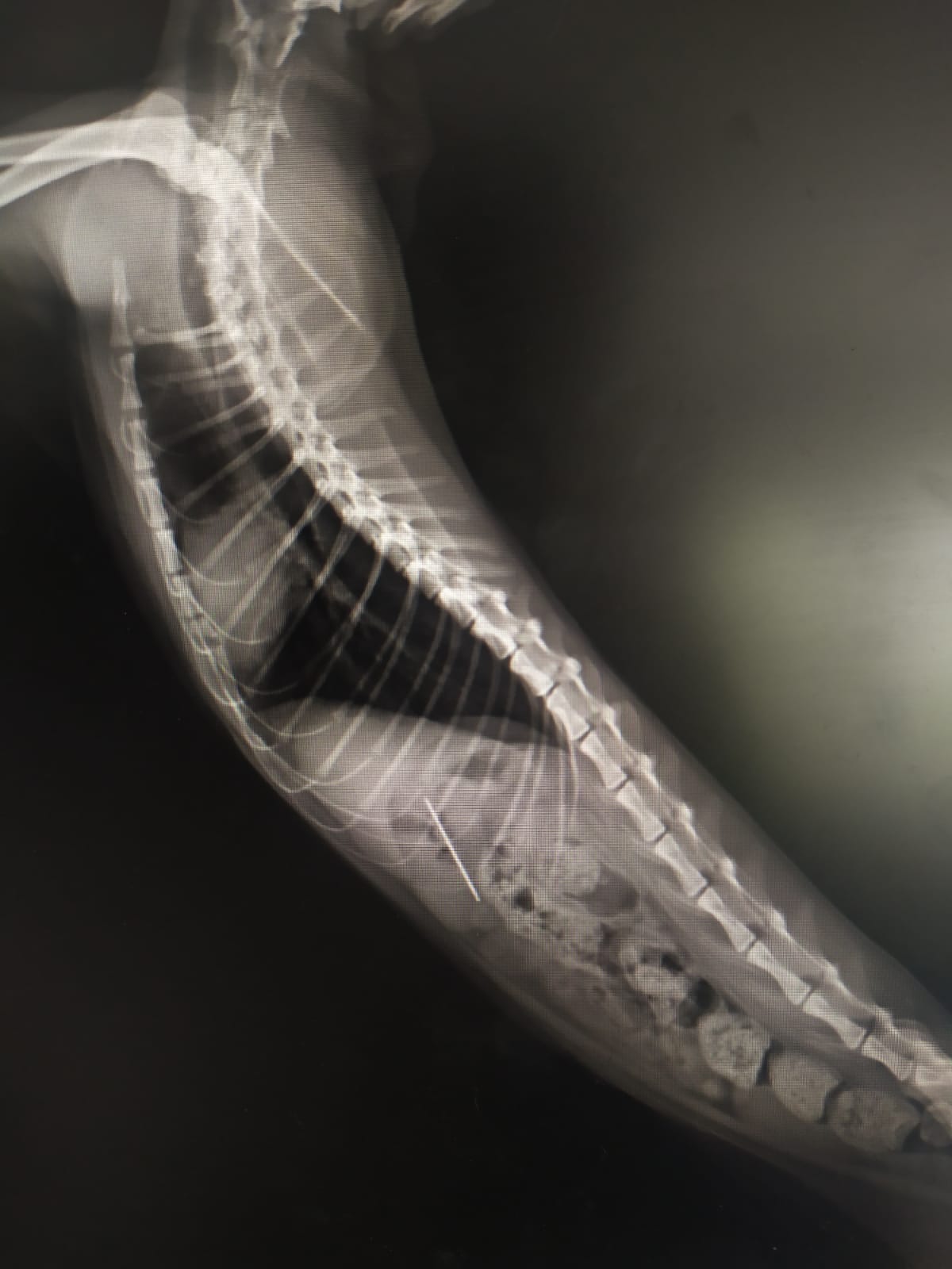 Kentte bulunan özel bir veteriner kliniğinde muayene edilen kedinin röntgeni çekildi.