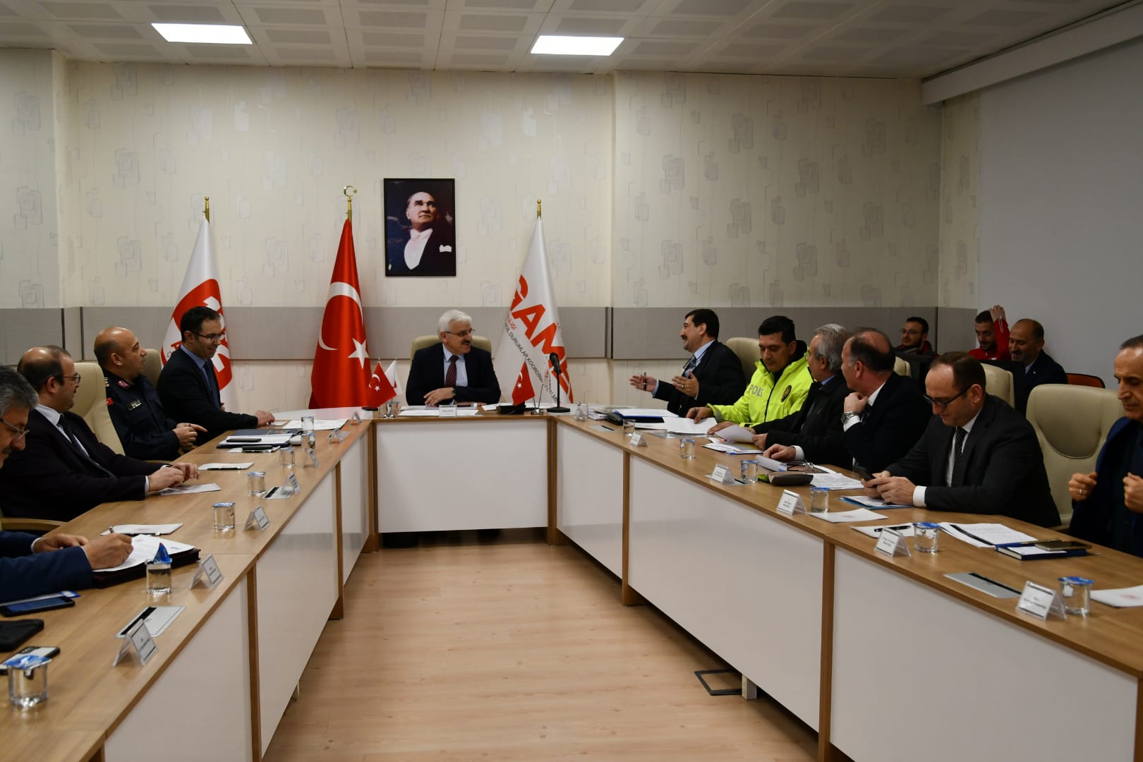 Bolu 112 Acil Çağrı Merkezi (AÇM) Toplantı Salonunda, Vali Erkan Kılıç başkanlığında düzenlenen masa başı tatbikatta, AFAD İl Müdürü Cengiz Çavuş sunum yaptı.