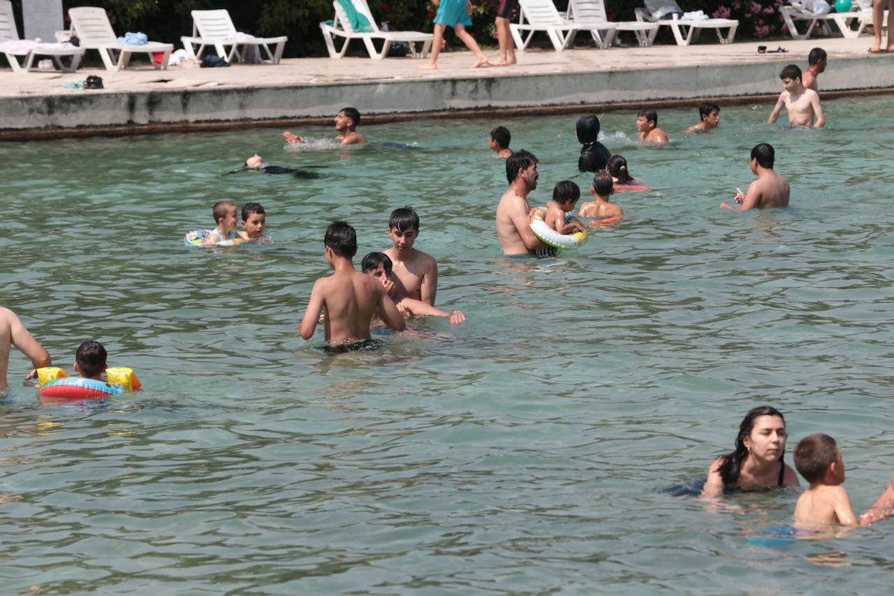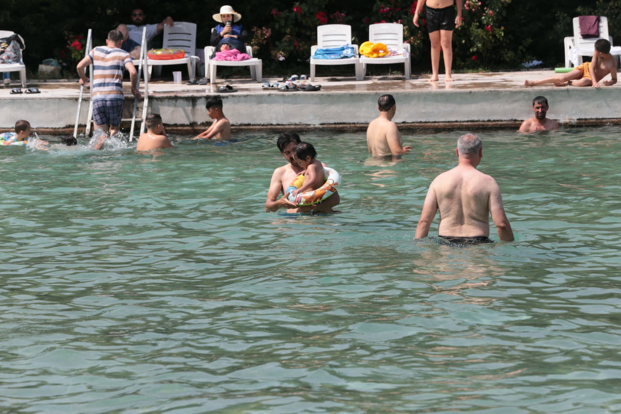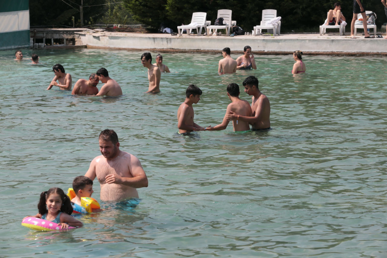 BOLU (AA) – Bolu'da sıcak havadan bunalanlar Akkaya Travertenlerine akın etti.