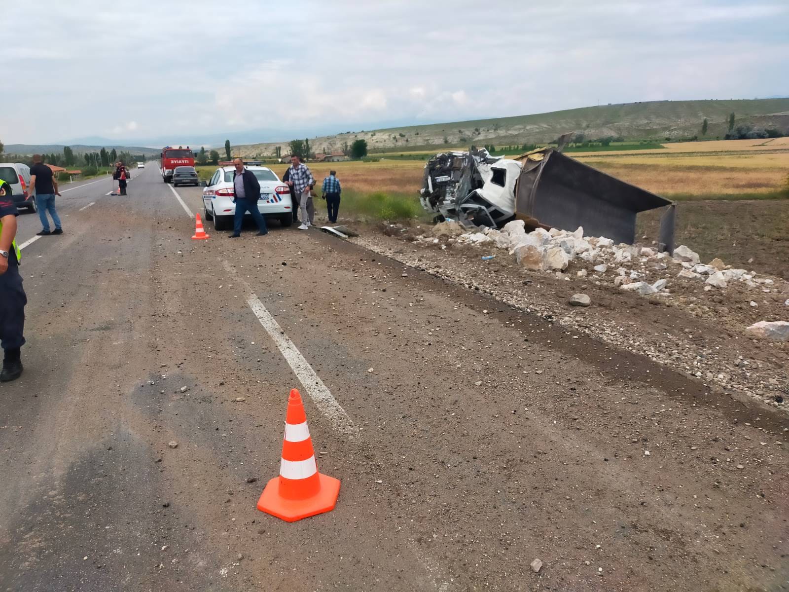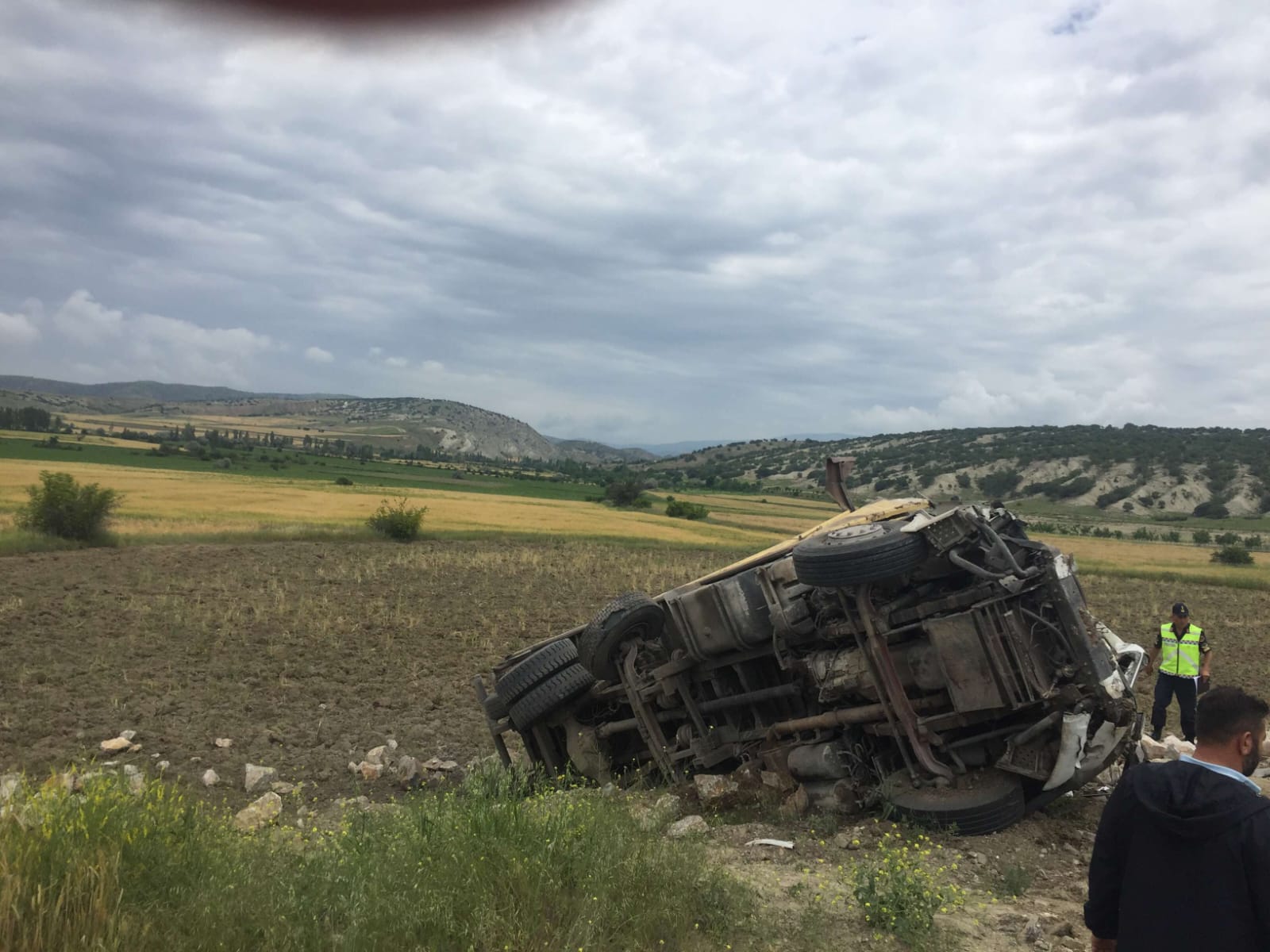 Servet L. (46) idaresindeki 19 ACR 392 plakalı hafriyat kamyonu, Çorum'dan İskilip ilçesine istikametine seyir halindeyken Dutköy mevkisinde devrildi.