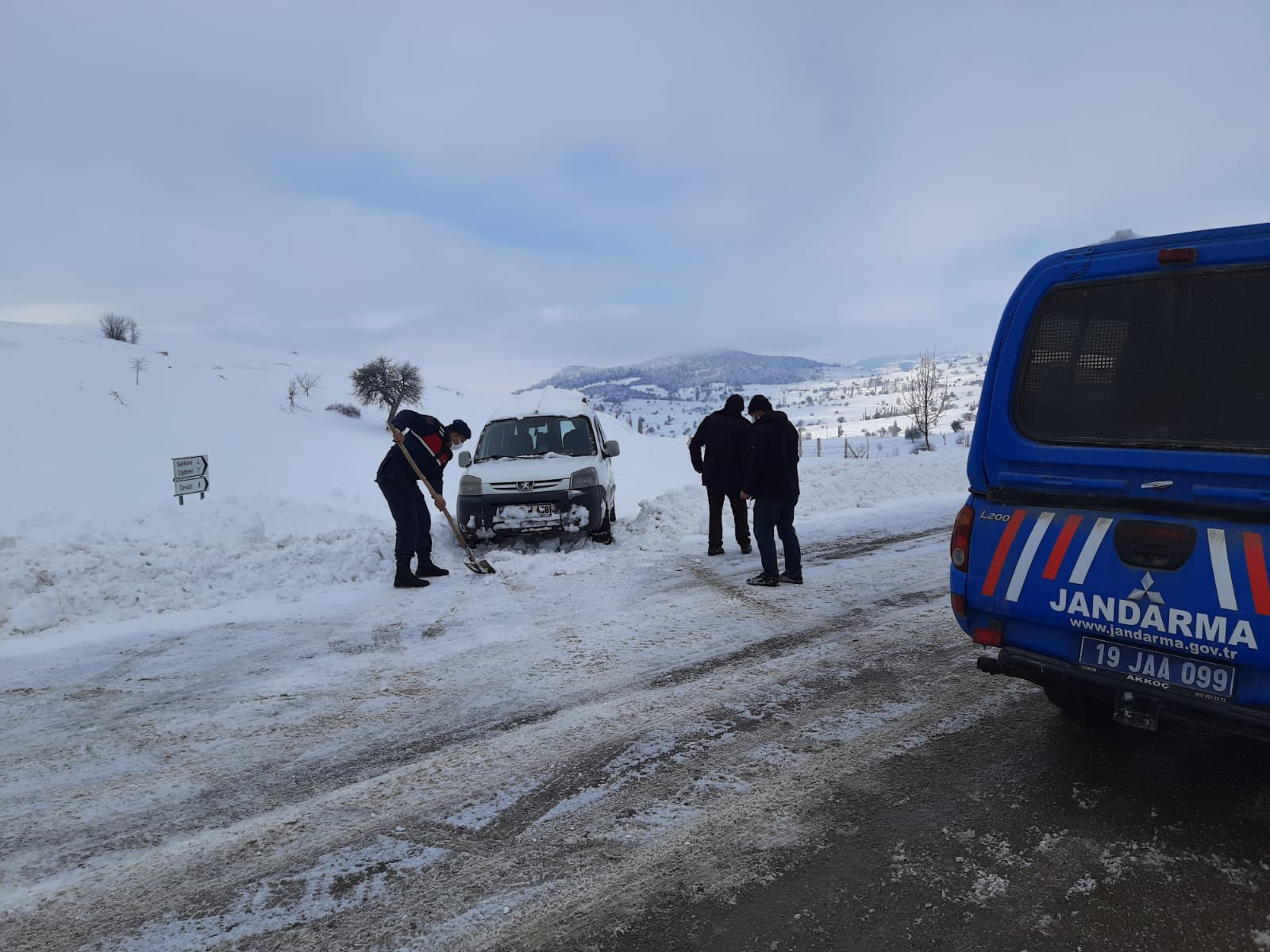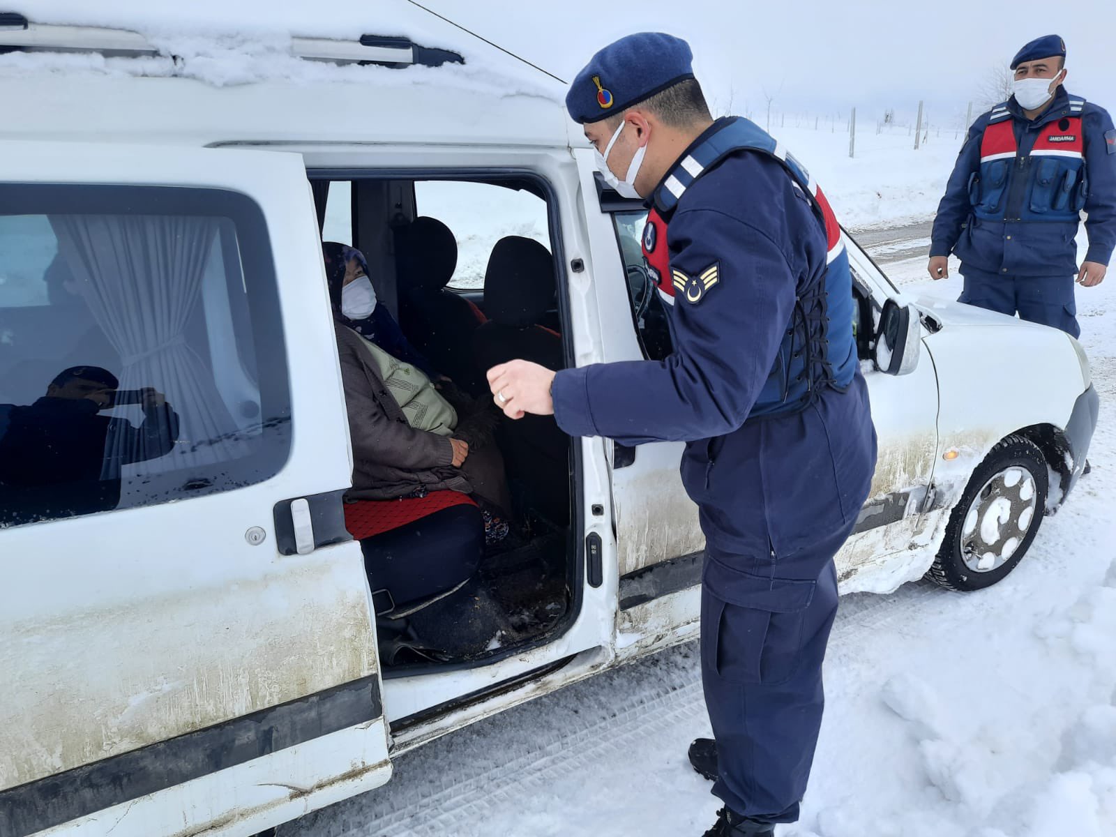 Arazi aracıyla bölgeye giden jandarma ekibi, aracı saplandığı kar birikintisinden kurtardıktan sonra diyaliz hastasını hastaneye götürdü.
