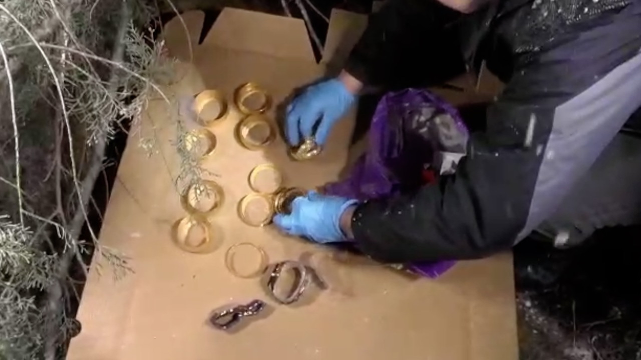 Altınlar, polis ekiplerince gömüldükleri yerden çıkarılarak incelemeye alındı.