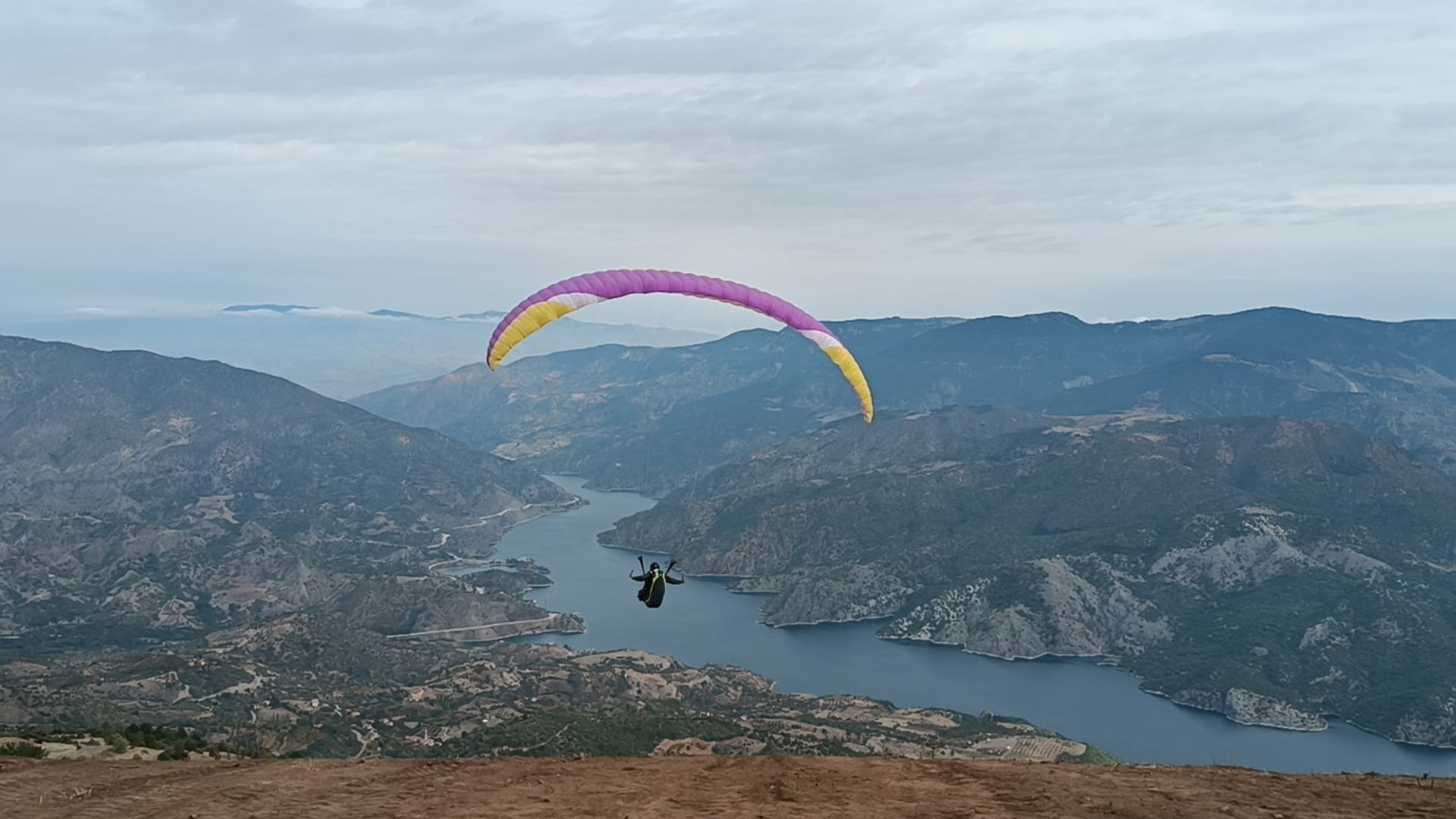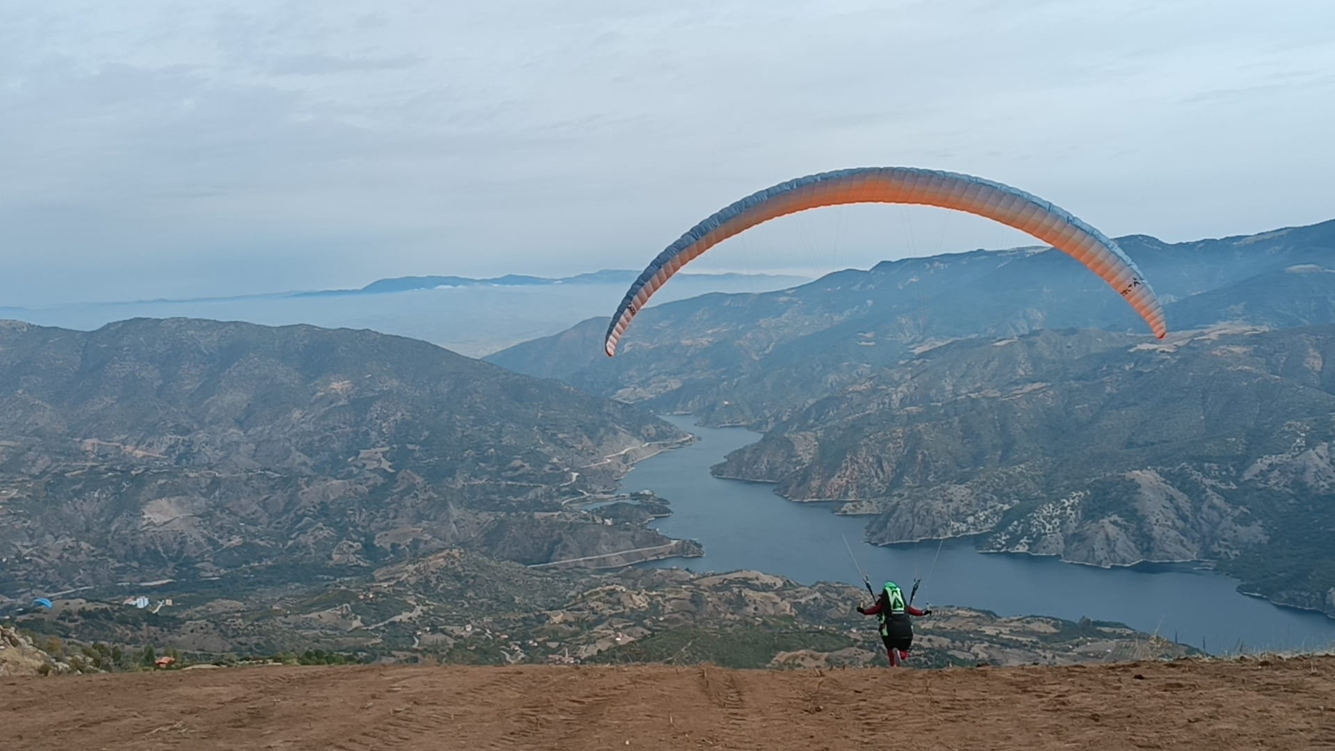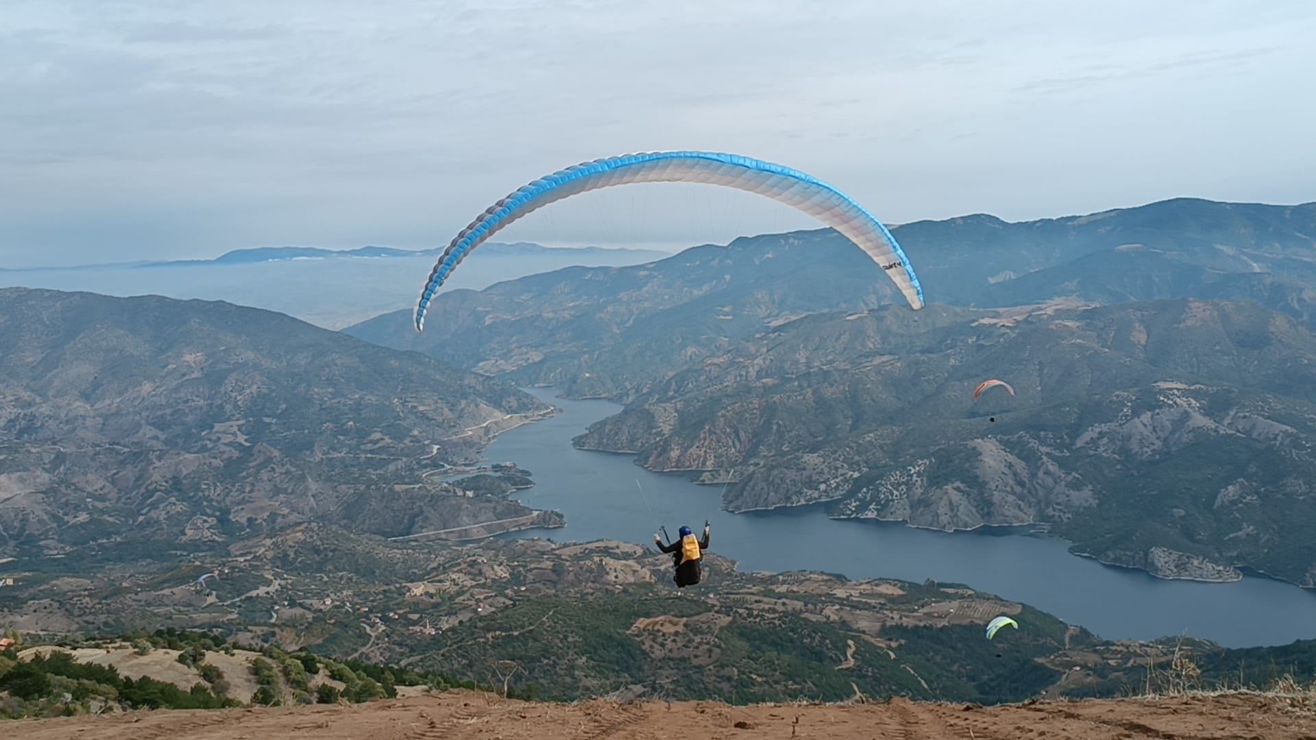 Çorum'un yanı sıra Erzincan, Denizli ve Trabzon'dan da sporcuların katıldığı etkinlikte paraşütçüler, Oğuzlar Belediyesince Obruk Barajı sahilinde inşa edilen yamaç paraşütü pistine indi.