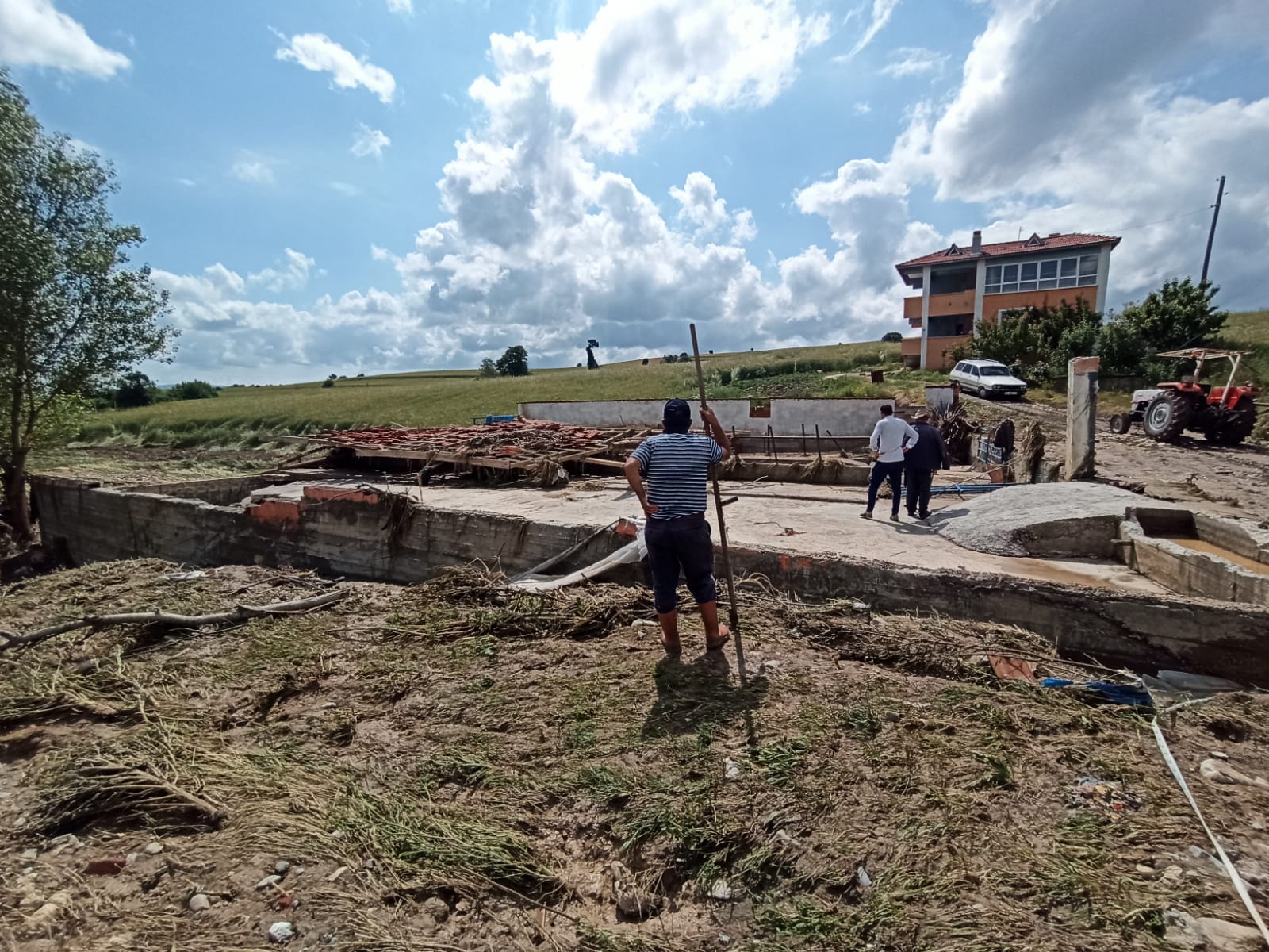 İlçede sağanağın ardından Doğu Mahallesi'nde meydana gelen sel, Haydar Dönmez'e ait ahırın yıkılmasına neden oldu.