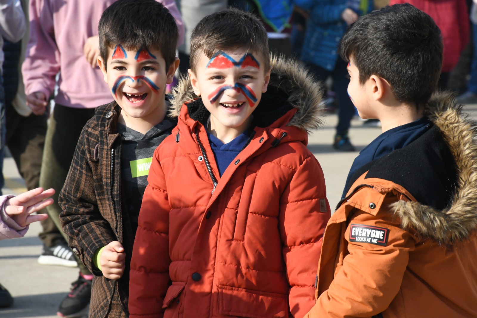 Ekipler, halat çekme, yüz boyama, çuval yarışı gibi oyunlarla çocukların depremi bir an olsun unutturarak eğlenceli vakit geçirmesini sağlıyor.
