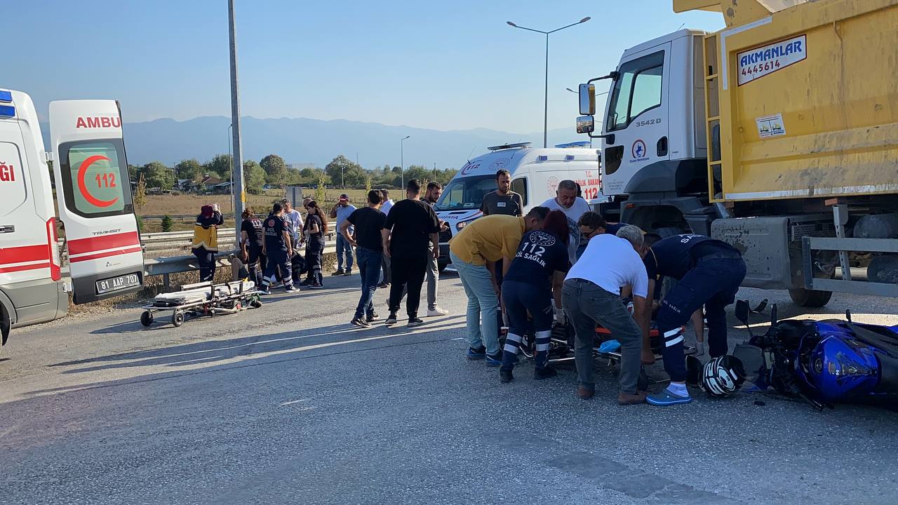 R.A. idaresindeki 81 DD 700 plakalı motosiklet, Kuzey Çevre Yolu Çamköy mevkisinde yan yola dönmek için manevra yapan İ.A. yönetimindeki 81 ACD 827 plakalı kamyonla çarpıştı.