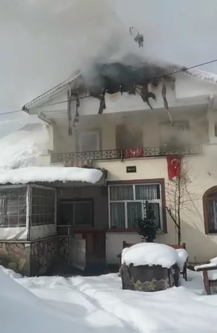 DÜZCE (AA) – Düzce'nin Kaynaşlı ilçesinde iki katlı müstakil evin çatısında çıkan yangın söndürüldü.