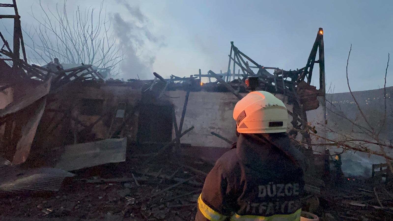 DÜZCE (AA) – Düzce'nin Gölyaka ilçesinde, samanlıkta çıkan, sonra eve de sıçrayan yangın itfaiye ekipleri tarafından söndürüldü.