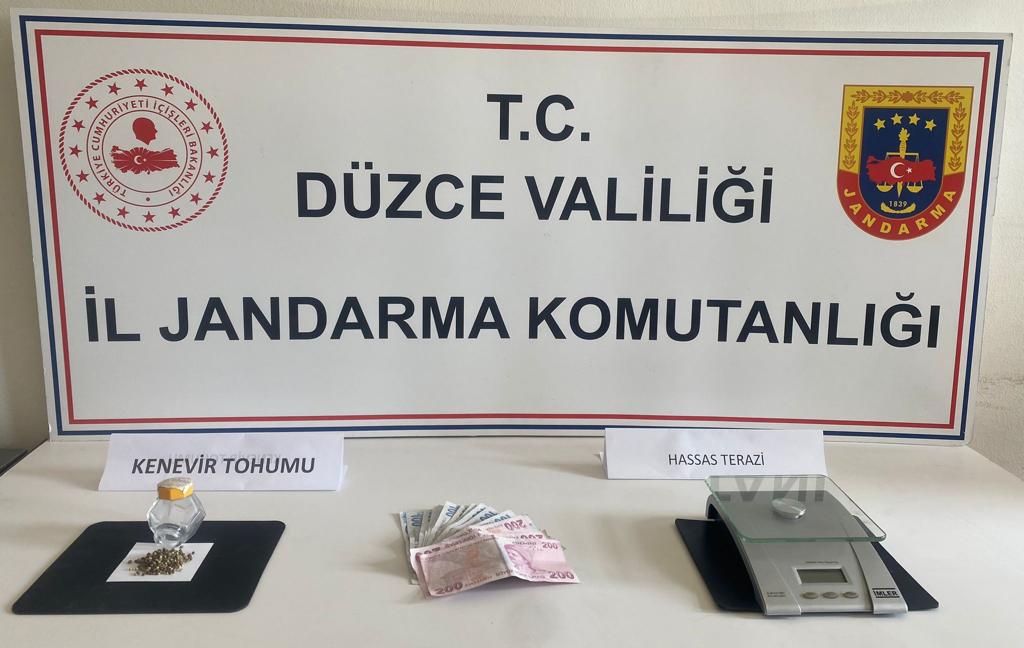 Gözaltına alınan şüphelinin ikametlerinde yapılan aramalarda, kenevir tohumu, hassas terazi ve suçtan elde edildiği değerlendirilen 1800 lira bulundu.