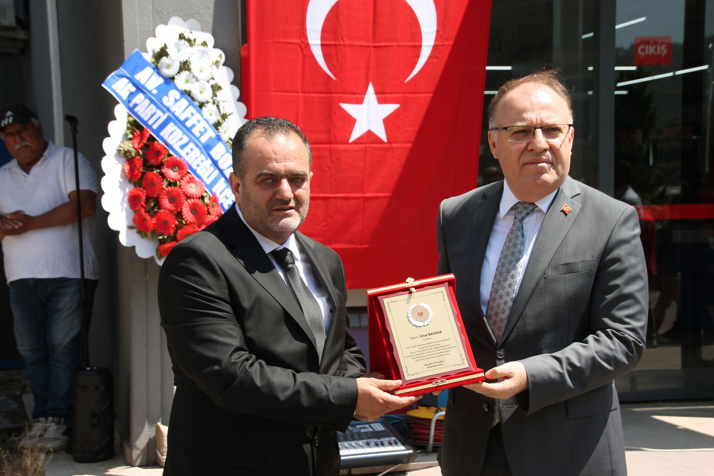 Vali Tutulmaz, daha sonra Bayrak'a plaket ve teşekkür belgesi verdi. Duanın ardından protokol üyeleri temel atma işlemi gerçekleştirdi.