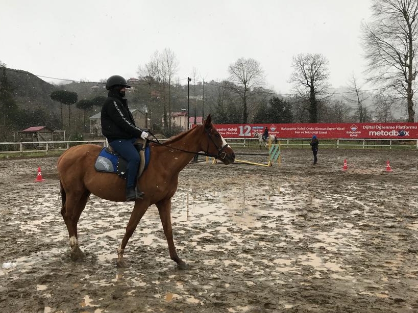 Giresun'un Bulancak ilçesindeki Bozatlıoğlu Atlıspor Kulübü tesislerinde gerçekleşen eğitimlerde öğrenciler at binmeyi öğreniyor.