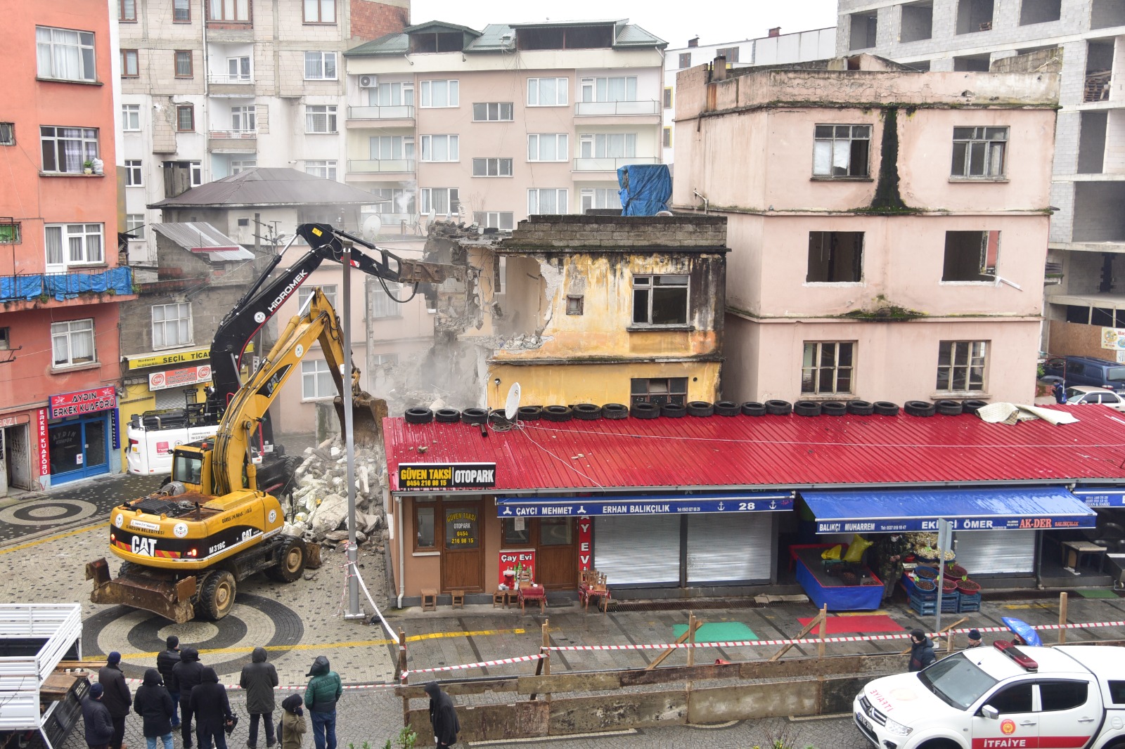 GİRESUN (AA) – Giresun Belediyesince Tabaklar geçidindeki kamulaştırılan binaların yıkım işlemleri sürüyor.