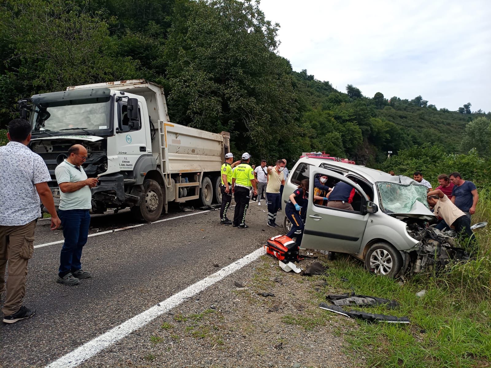 Yaralanan sürücüler ile Mert Yağmurkaya ve Sadenur Araştır, sağlık ekiplerince Yağlıdere Devlet Hastanesi'ne kaldırıldı.