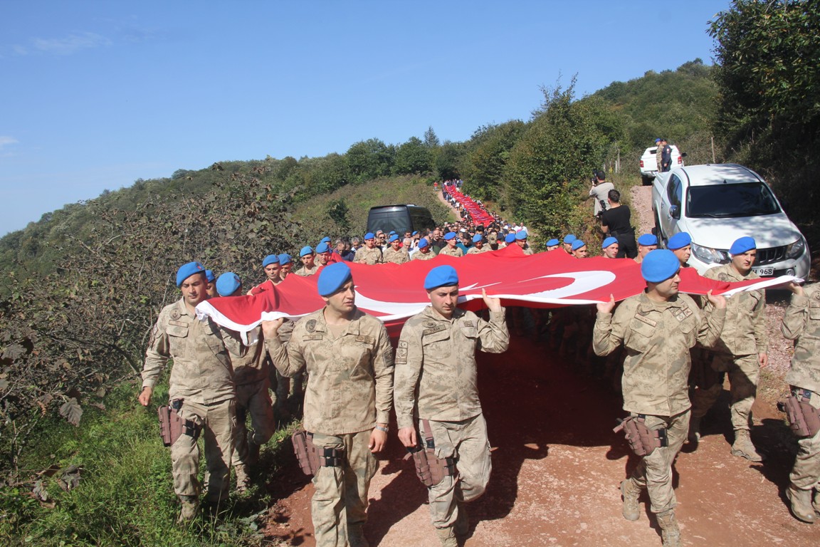 Güce ilçesinde, 1917-1918 Osmanlı-Rus Savaşı'nda Harşit savunmasının yapıldığı alanlardan Şaban Kalesi'nde şehit düşen askerler için düzenlenen yürüyüş, 2 kilometrelik güzergahta gerçekleştirildi.
