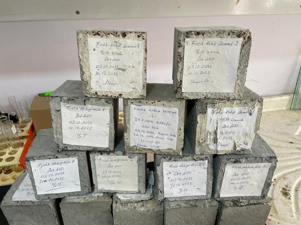 Fındık atıklarının beton agregasında geri dönüşümünün mümkün olup olmayacağına yönelik çeşitli araştırmalar içerisine girdiğini belirten Çelik,”İlk denemelerde istediğim gibi sonuçlar elde ettim. Daha sonra bölgemizdeki bir beton santrali yetkilileriyle irtibata geçerek araştırmalarımı bir aşama ileriye taşıdım ve fındık kabuğunun içerisinde yer aldığı beton bloklar elde ettik.” dedi.