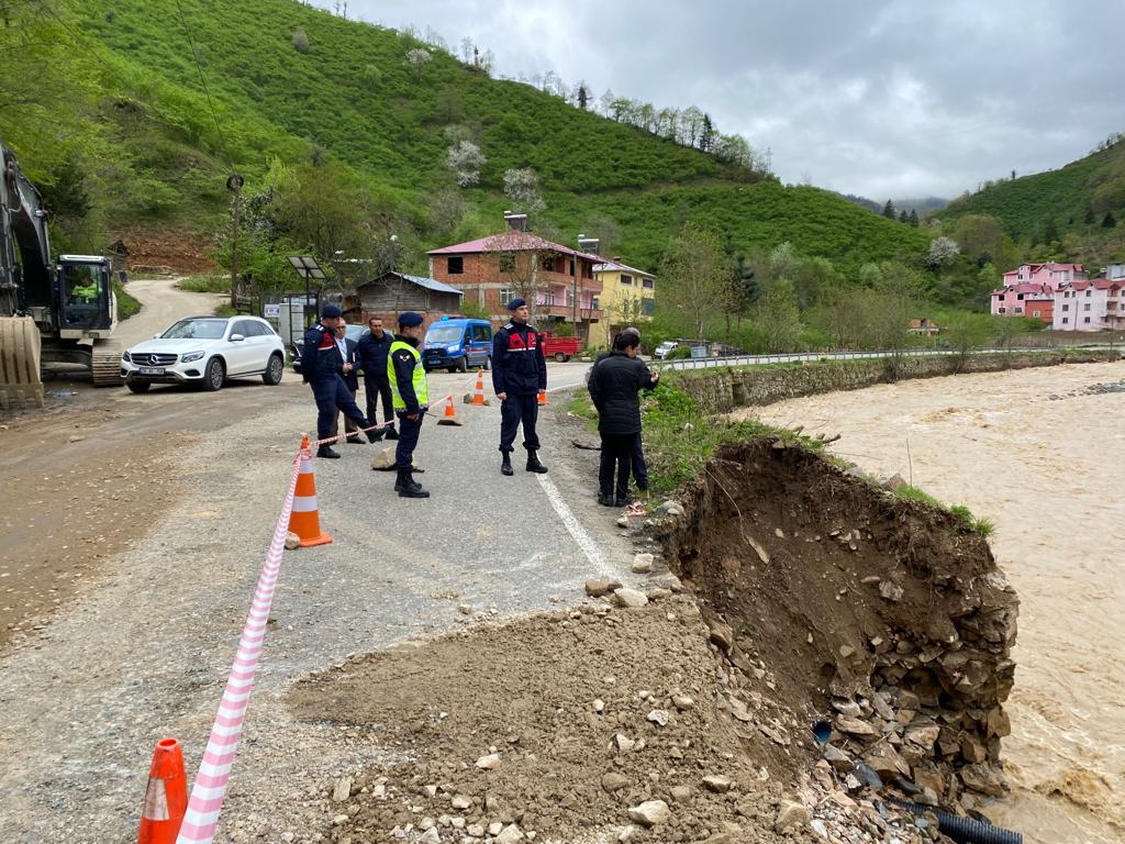“Yağlıdere-Alucra kara yolu dere taşkını sonucu ulaşıma kapalı bulunuyor. Derenin debisinin yüksekliği müdahaleyi engelliyor. Su seviyesi, uygun seviyeye indiğinde olası heyelan riski de değerlendirilerek servis yolu çalışması ve çöküntü gerçekleşen yere köprü imalatına başlanacak.”