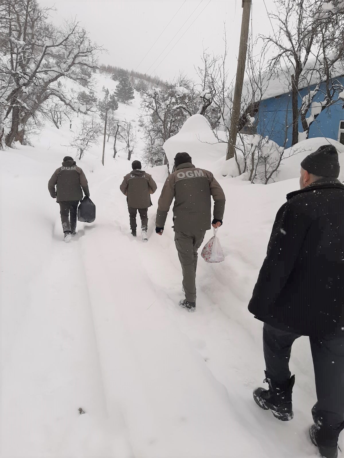 İki metre kar bulunan köyün acil ihtiyaçları için kurumlar seferber oldu