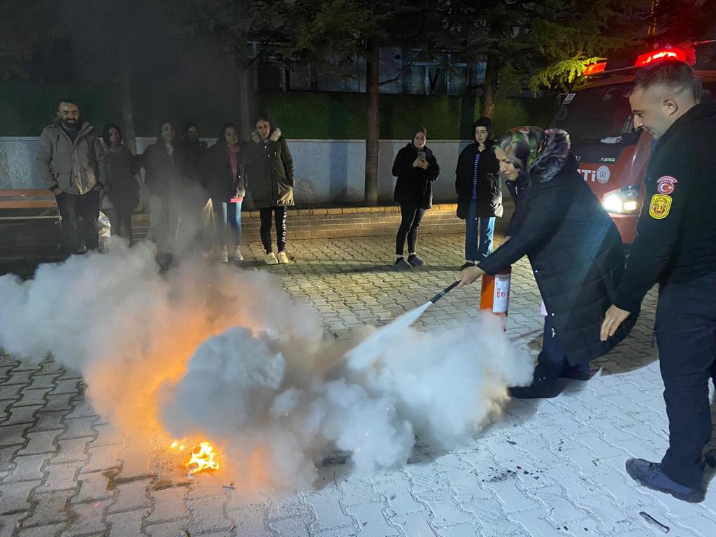 ÇORUM (AA) – Çorum'un İskilip ilçesindeki Kredi ve Yurtlar Kurumu (KYK) İskilip Kız Öğrenci Yurdu'nda öğrencilere yangına müdahale eğitimi verildi.