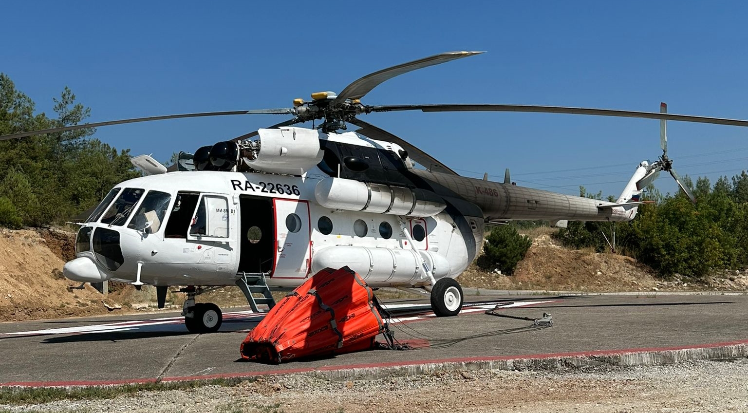 Helikopterin Mi-8 tipi Rus yapımı ve 3 ton su atma kapasitesine sahip olduğu aktarılan açıklamada, “Havada 2 saat 15 dakika kalabilmektedir. 2 yabancı pilot, 1 Türk pilot, 3 teknisyen ve 1 OGM personeli olmak üzere 7 kişilik mürettebatı bulunmaktadır.” ifadesi kullanıldı.