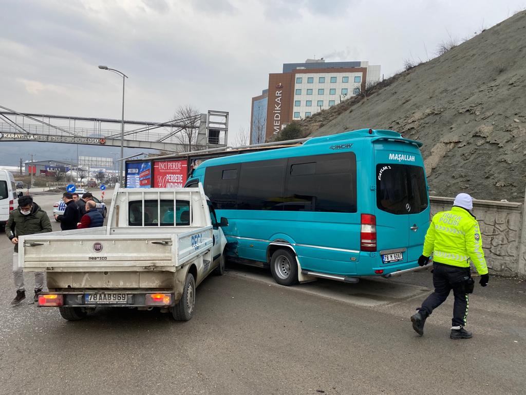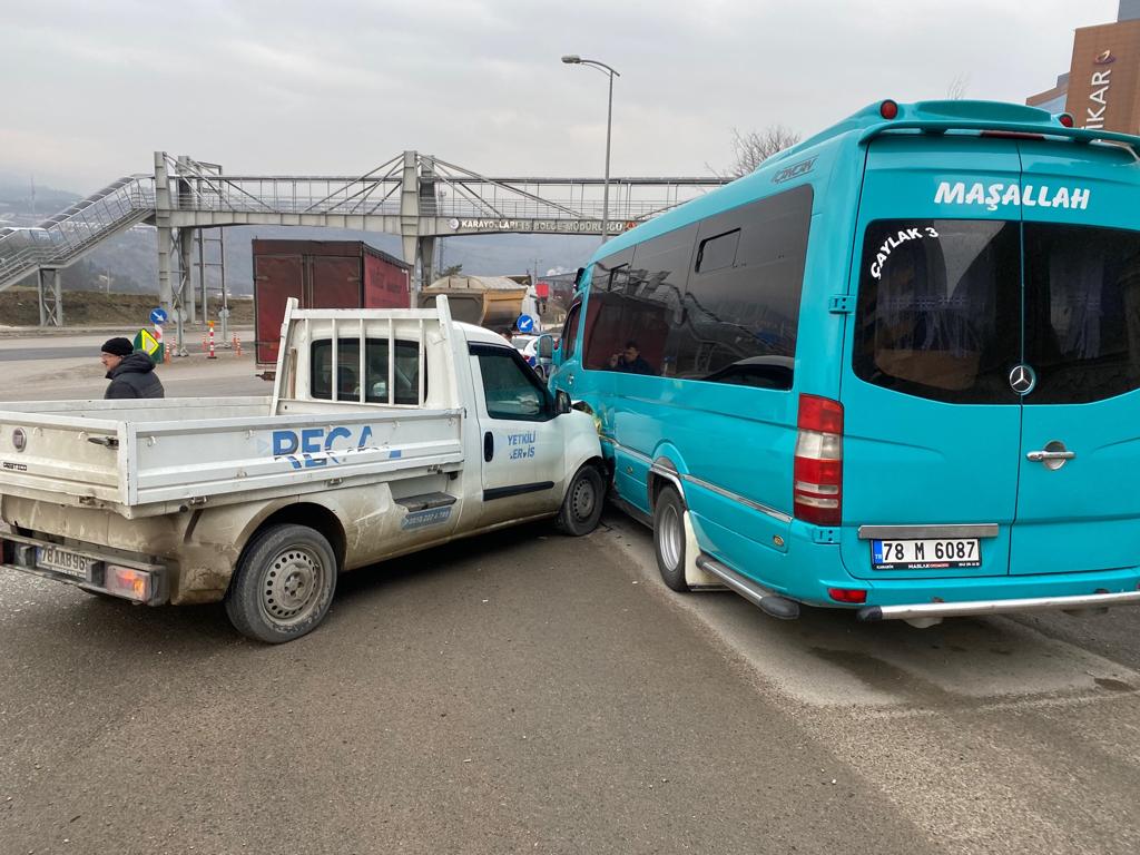 M.T. idaresindeki 78 AAB 969 plakalı kamyonet, Üniversite Mahallesi Efsa Nur Sokak'ta sürücünün direksiyon hakimiyetini kaybetmesiyle önünde seyreden E.C. yönetimindeki 78 BY 967 plakalı otomobile, ardından park halindeki 78 M 6087 plakalı minibüse çarptı.