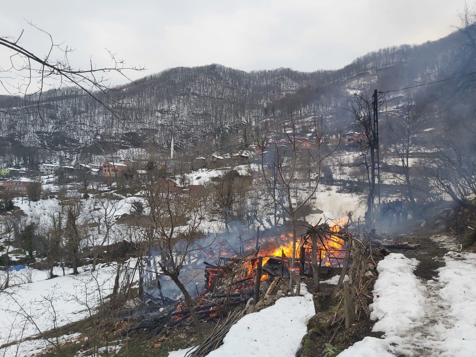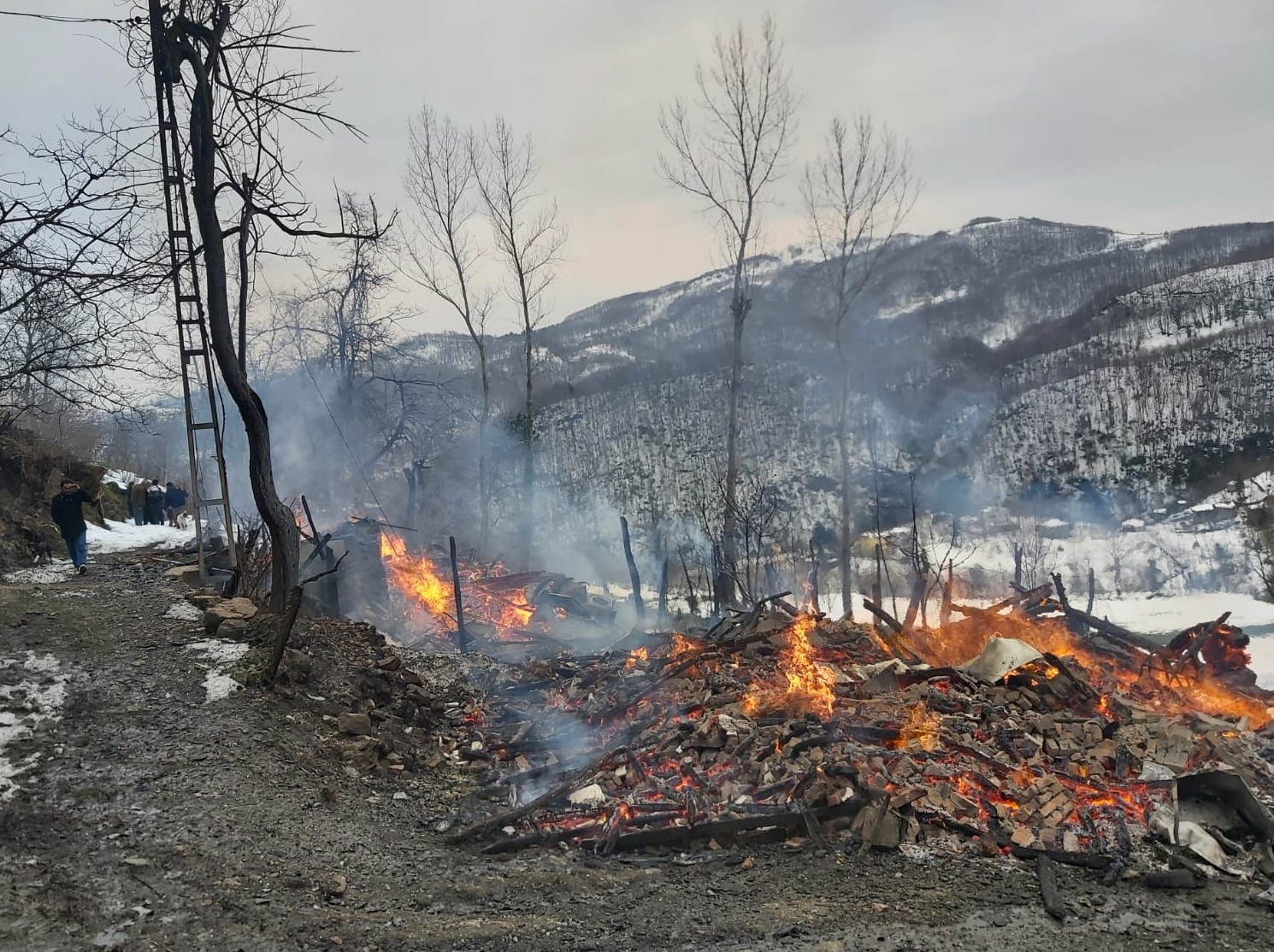 Yurtbaşı köyünde Kezban Alan'a (80) ait 2 katlı ahşap evde henüz belirlenemeyen nedenle yangın çıktı.